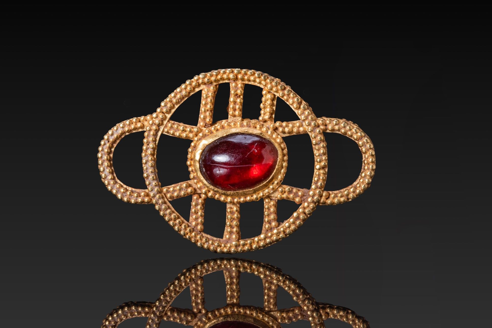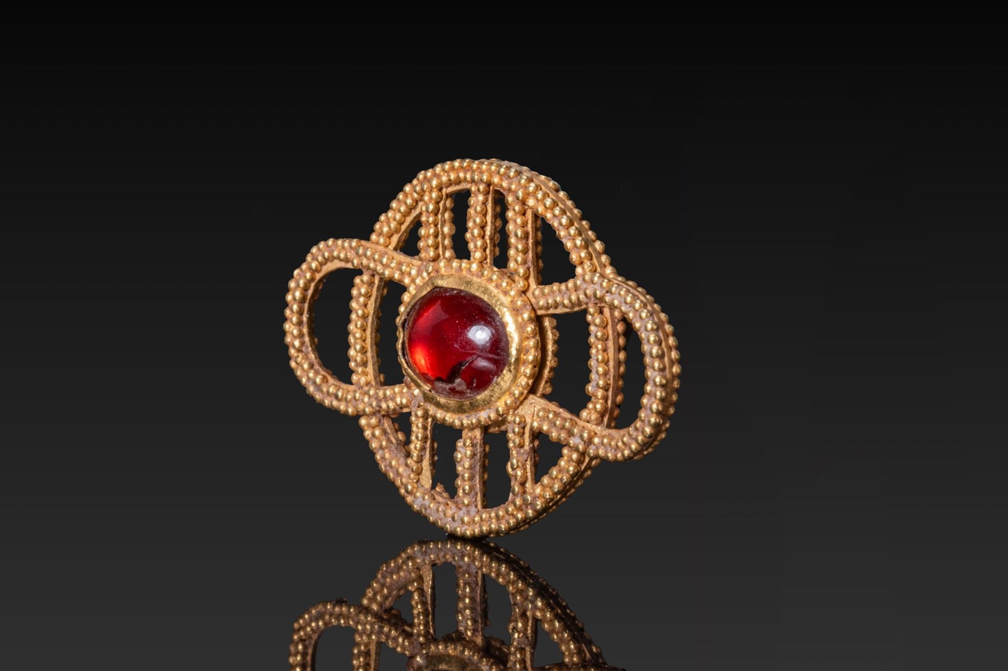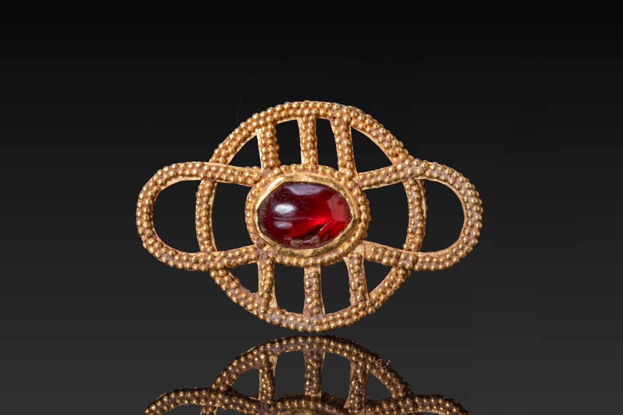 Premium BYZANTINE GOLD PENDANT WITH LARGE CENTRAL CABOCHON. Ca. AD 4…