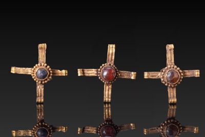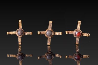 COLLECTION OF BYZANTINE GOLD CROSS PENDANTS WITH CENTRAL CAB…