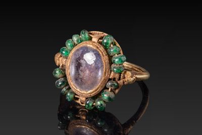 BYZANTINE GOLD RING WITH CENTRAL SAPPHIRE AND EMERALDS. Ca. …