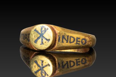BYZANTINE GOLD AND NIELLO RING WITH INSCRIPTION 'VIVAS IN DE…