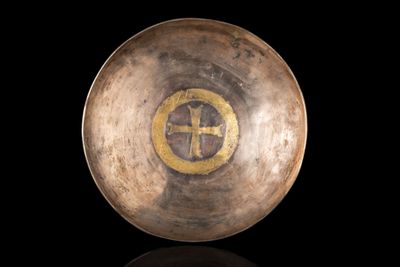 SUPERB BYZANTINE SILVER-GILT SHALLOW BOWL WITH CENTRAL CROSS…