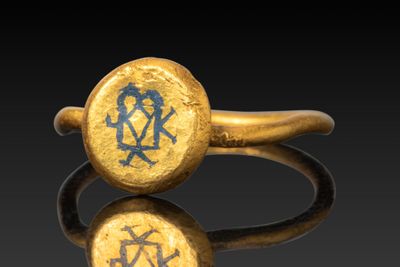 BYZANTINE HIGH KARAT GOLD RING WITH NIELLO MONOGRAM. Ca. AD …
