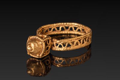 BYZANTINE OPENWORK GOLD ARCHITECTURAL RING WITH DOMED BEZEL.…