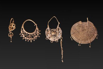 COLLECTION OF EARLY BYZANTINE OPENWORK GOLD EARRINGS. Ca. AD…
