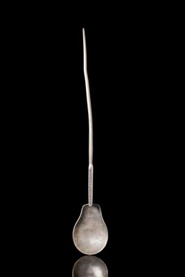 BYZANTINE SILVER SPOON WITH INSCRIPTION 'POLYCRONION'.