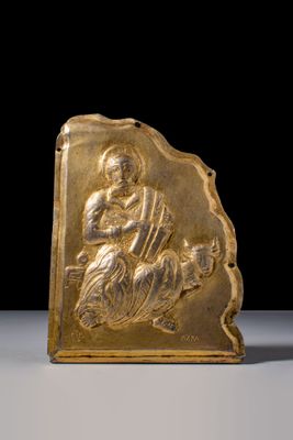 LARGE BYZANTINE SILVER-GILT APPLIQUÉ DEPICTING SAINT LUKE AN…