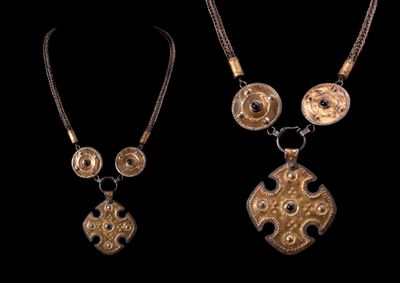 MEROVINGIAN SILVER-GILT BISHOP'S NECKLACE WITH CROSS PENDANT…