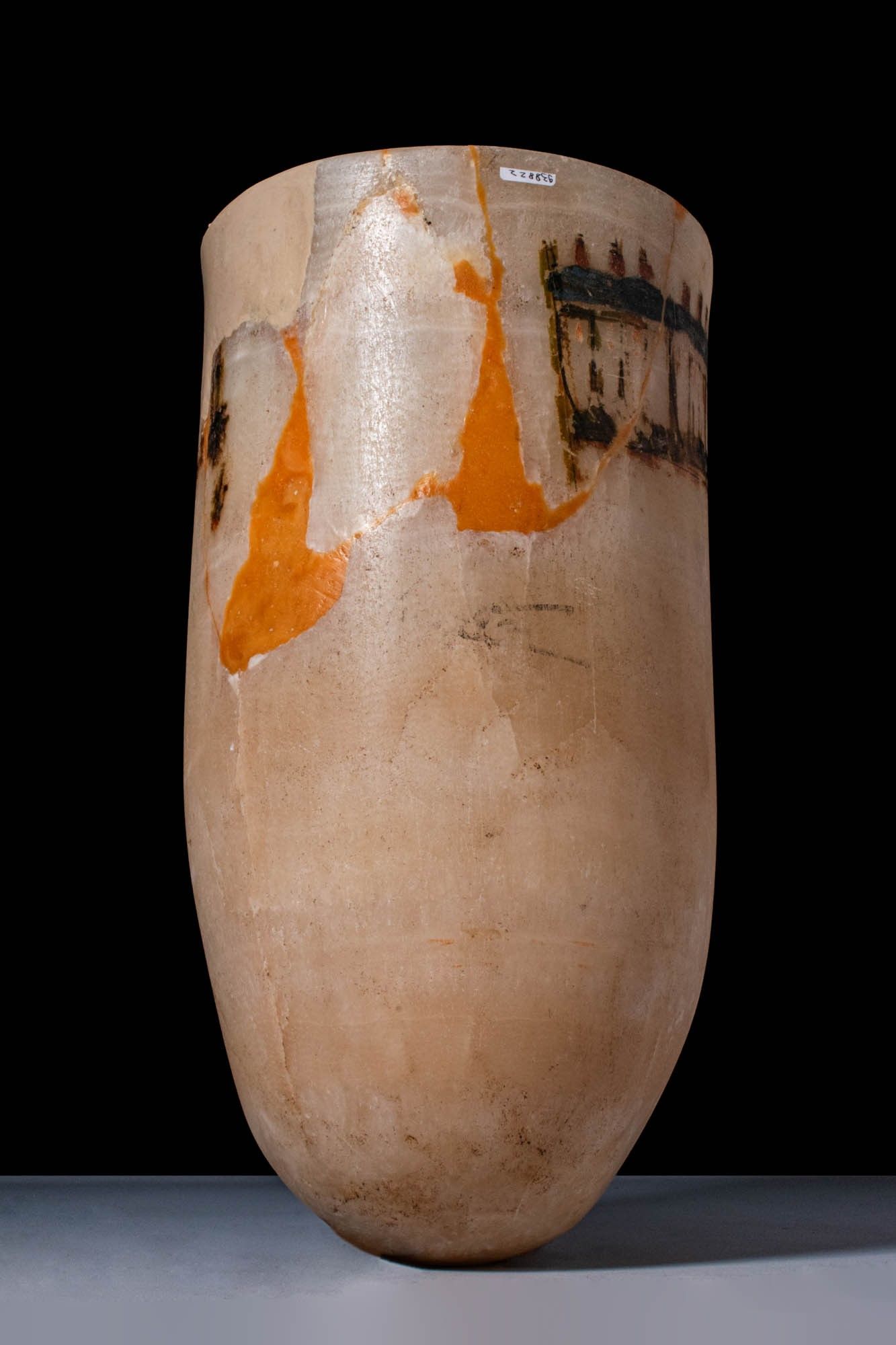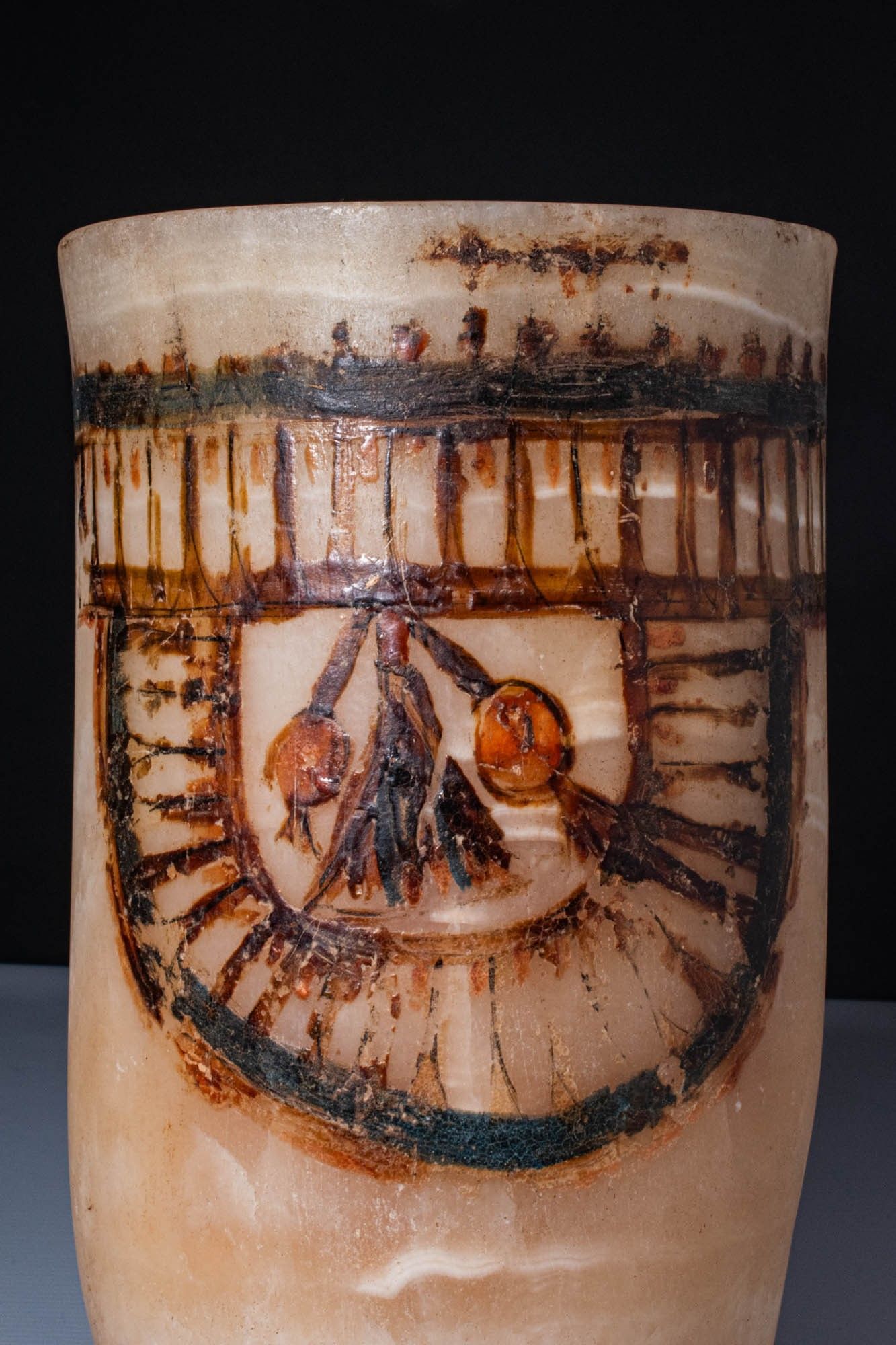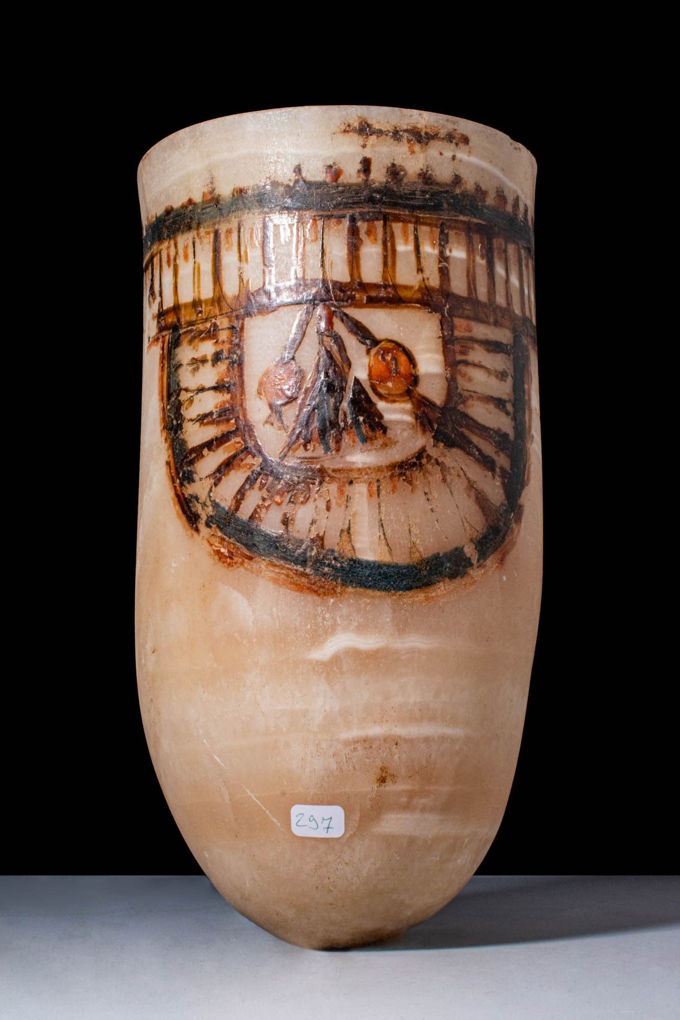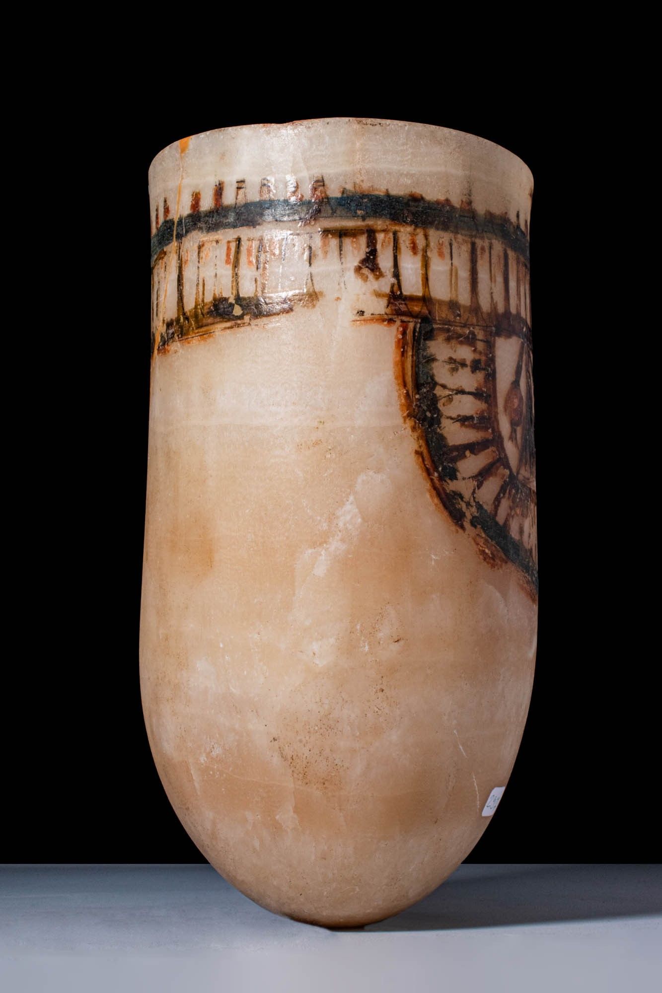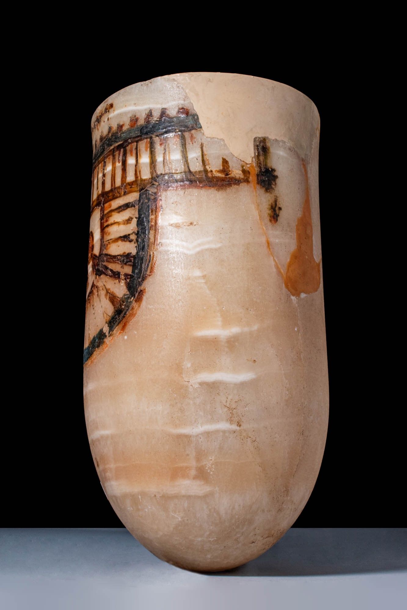 Premium MAGNIFICENT EGYPTIAN PAINTED ALABASTER CERIMONIAL JAR.