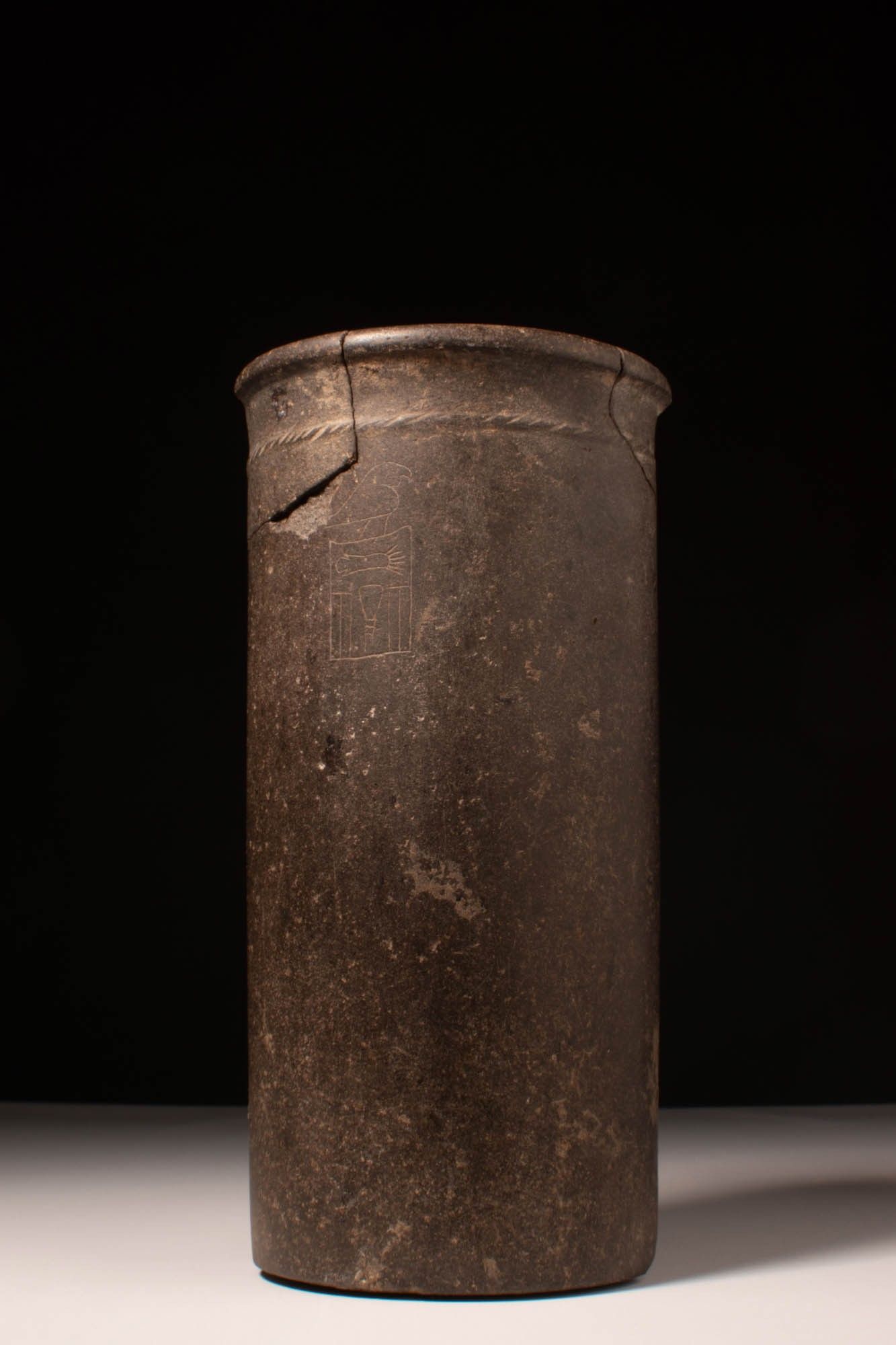 Premium SCARCE EGYPTIAN CYLINDRICAL VASE IN THE NAME OF KING NARMER.