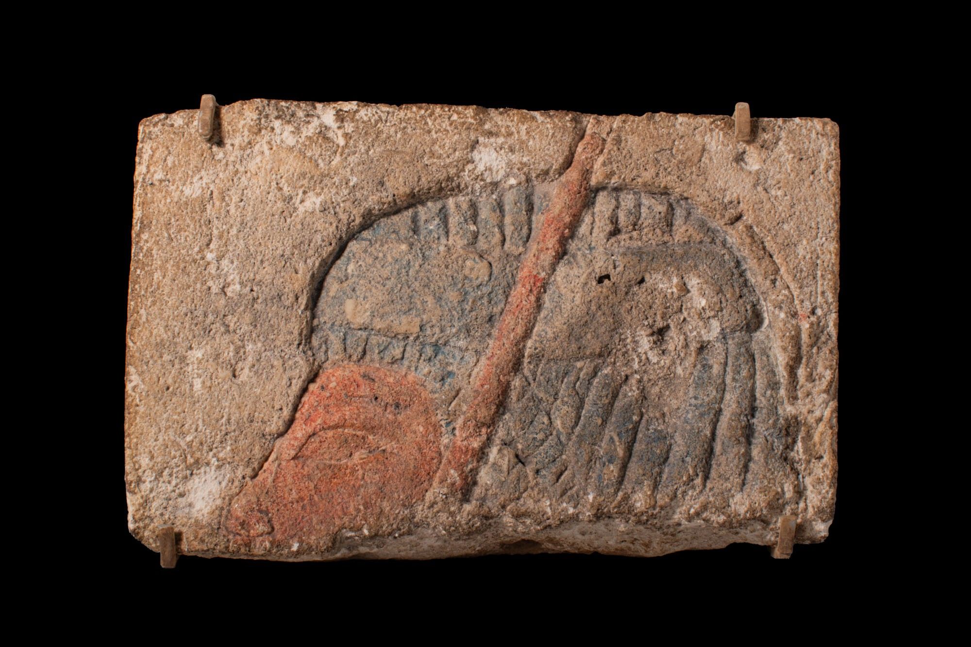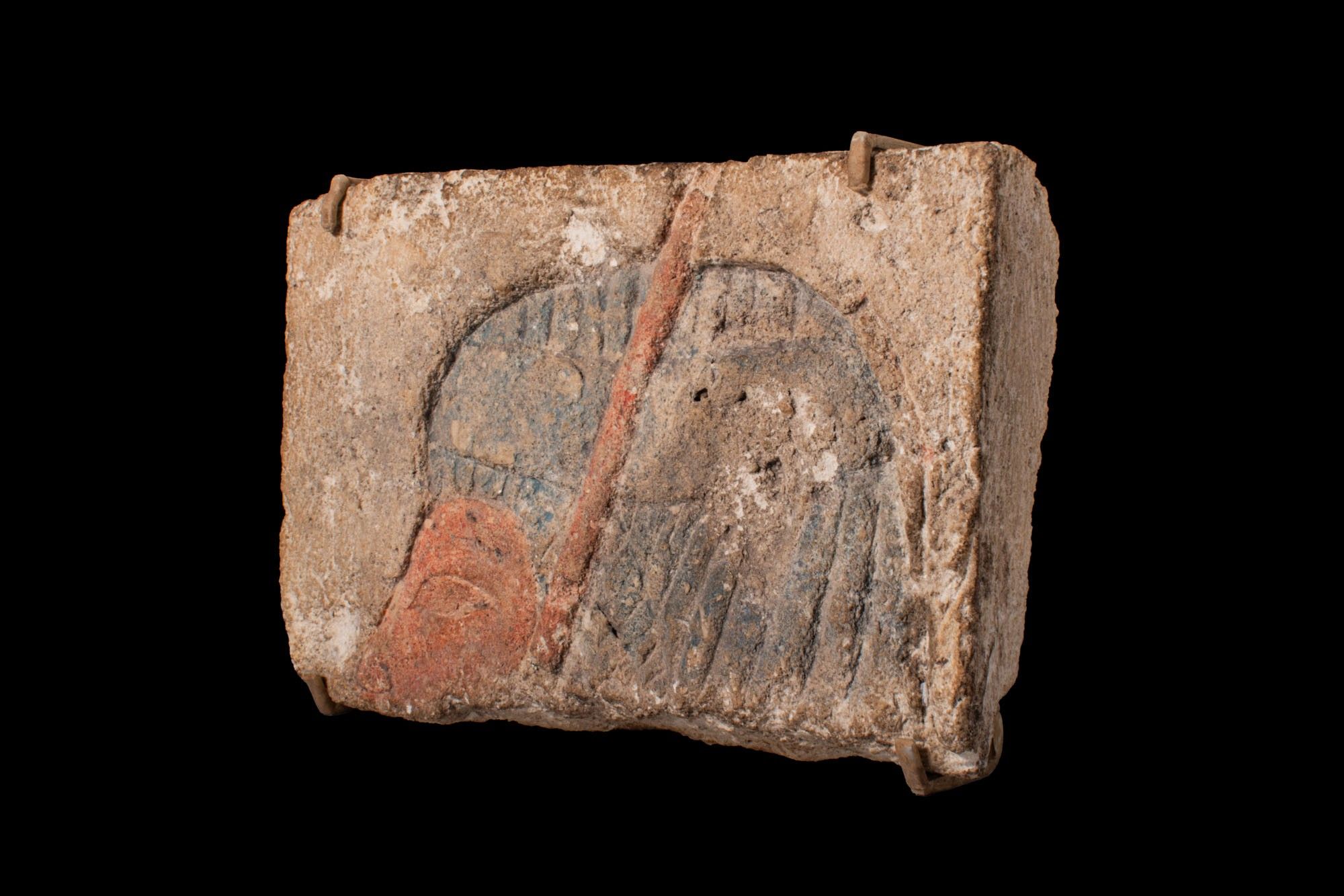 EGYPTIAN SANDSTONE RELIEF OF WORSHIPPER WITH BLUE WIG. Amarna Period, Ca. 1353 - 1335 BC. A sandstone relief block carved in sunk relief with the profile head of a worshipper facing left. The figure wears a striated wig with surviving blue pigment. The slab is squared on the edges and flat on the reverse. For similar see: P. giovetti, D. Picchi, Egitto Splendore millenario, la collecione di Leiden a Bologna, cat. V.41 Size: 185mm x 120mm; Weight: 1.37kg Provenance: Prince collection, 1990s-2014; Ex. Private collection 1970s-1990s. This piece is accompanied by a historical report from Lisa Sartini, Egyptologist PHD of Chimera Heritage Consultants. This piece is accompanied by an authentication statement from Simone Musso, consultant curator for Egyptian antiquities at the Stibbert Museum, Florence, Italy, member of the Nuri Archaeological Expedition. This item has been cleared against the Art Loss Register database and comes with a confirmation letter.