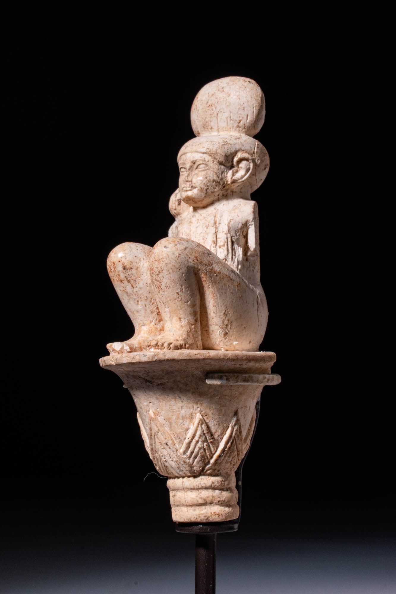 EGYPTIAN STONE STOPPER WITH YOUNG SUN GOD.