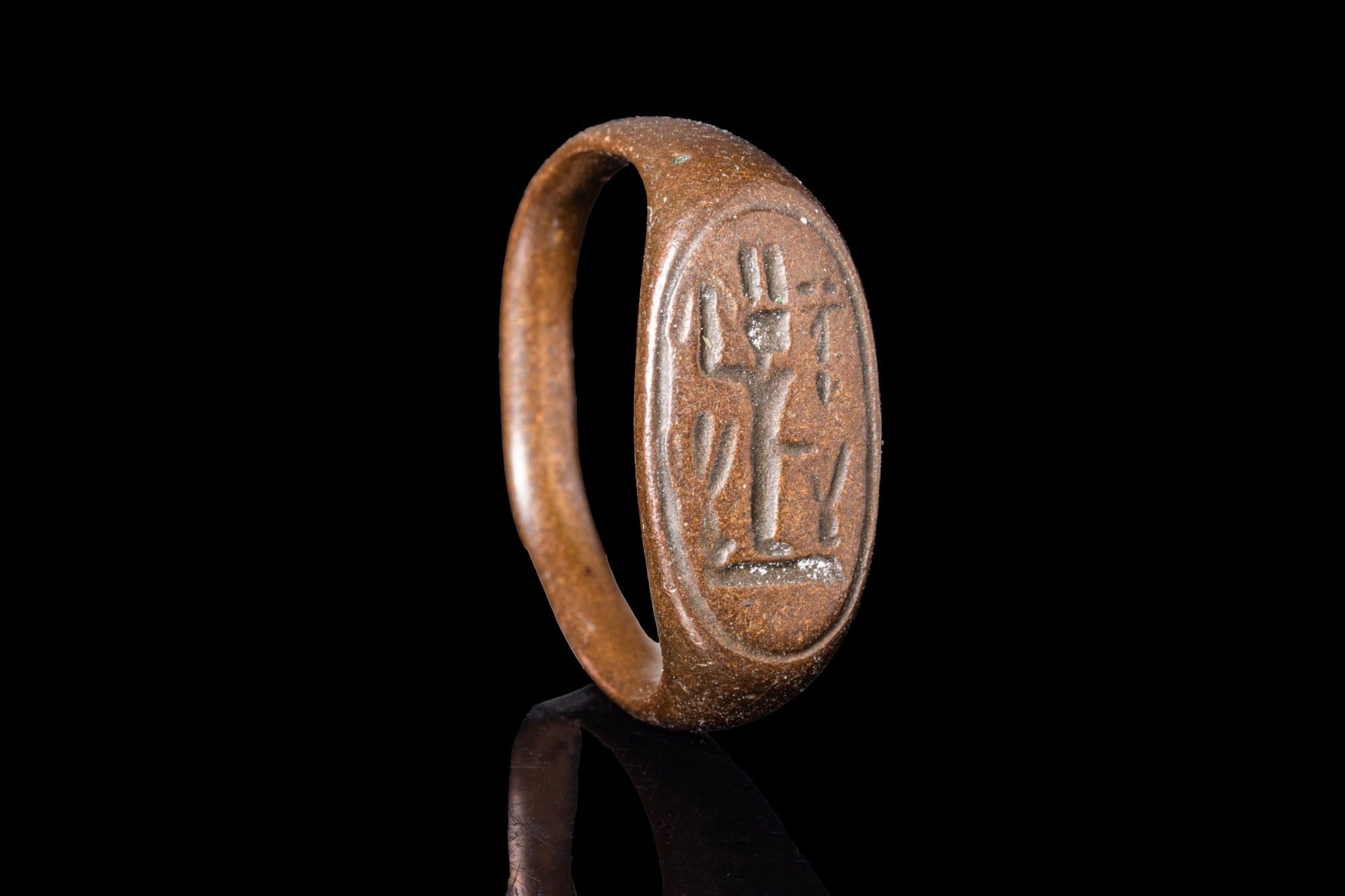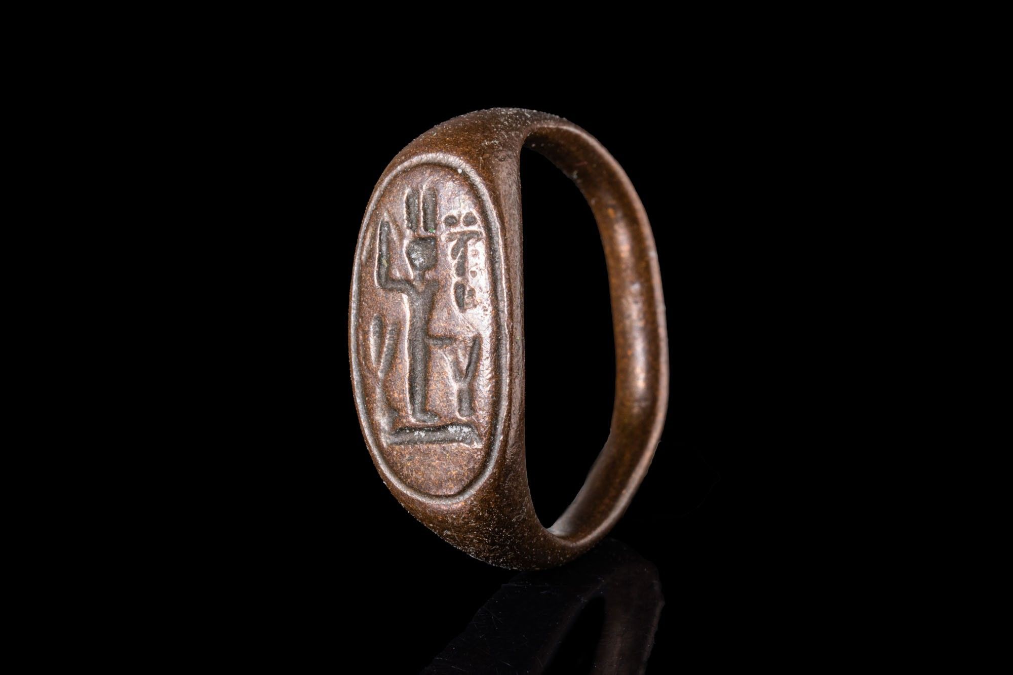 EXTREMELY RARE EGYPTIAN BRONZE CARTOUCHE RING.