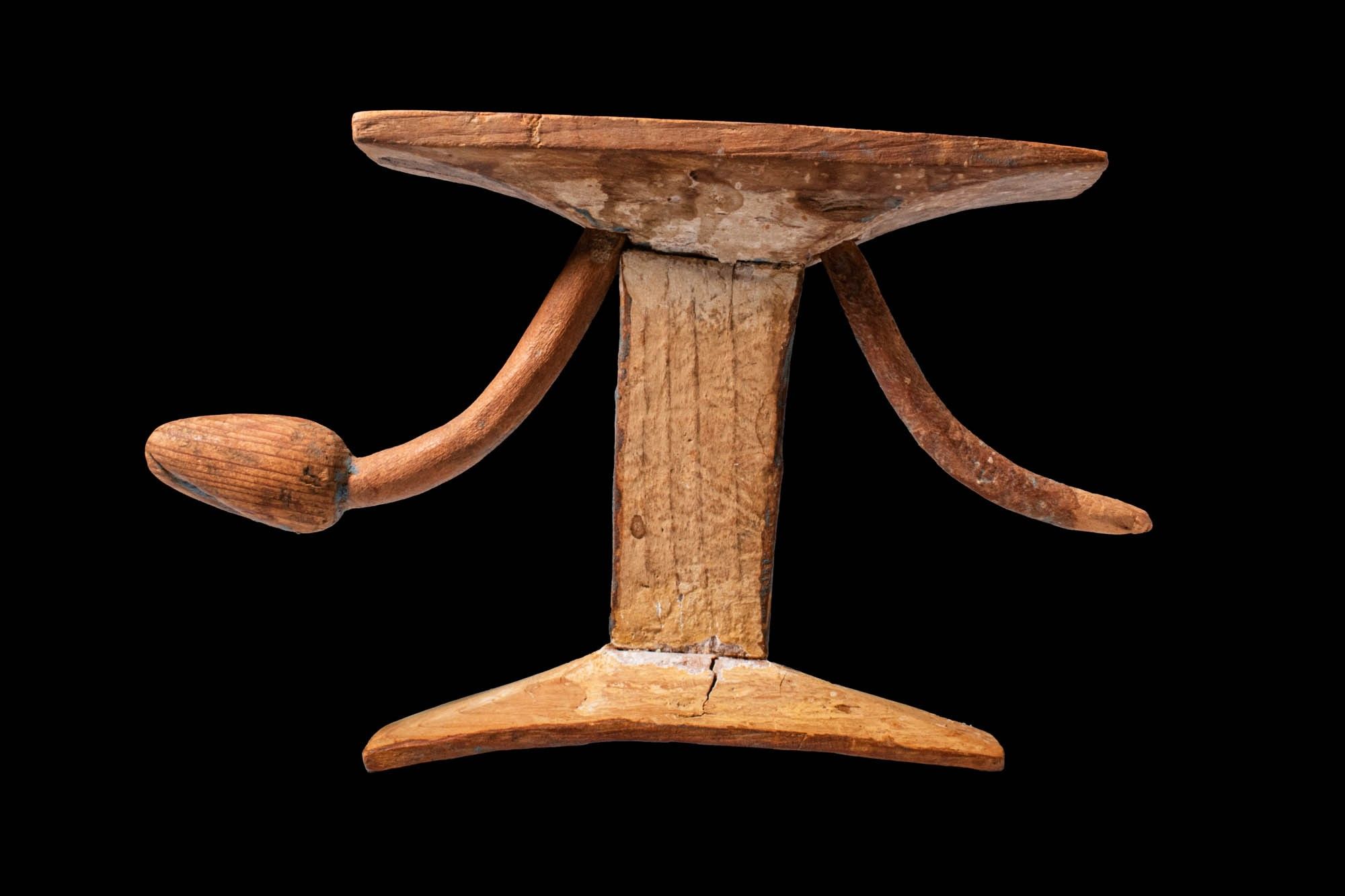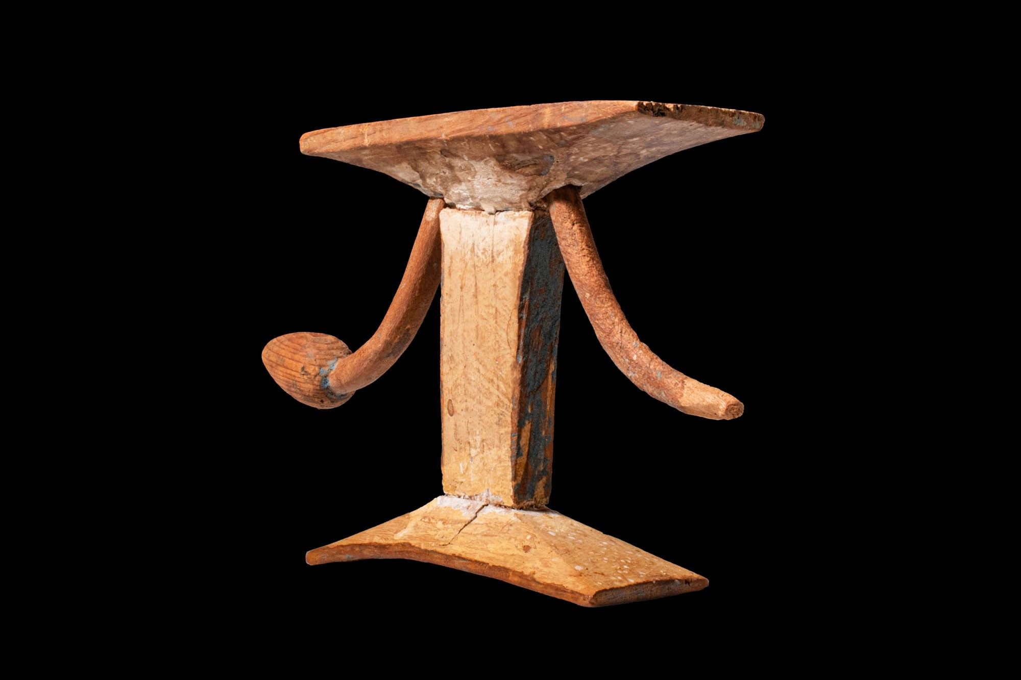 EGYPTIAN WOODEN HEADREST WITH LOTUS BUDS.