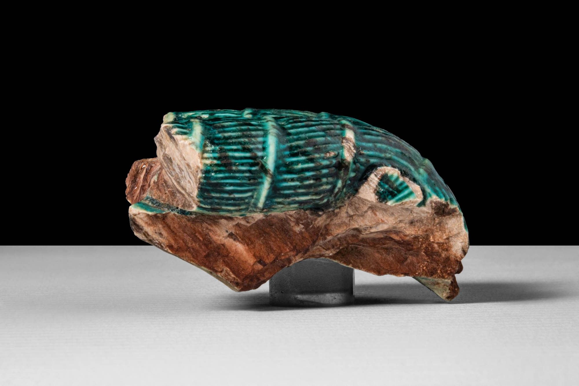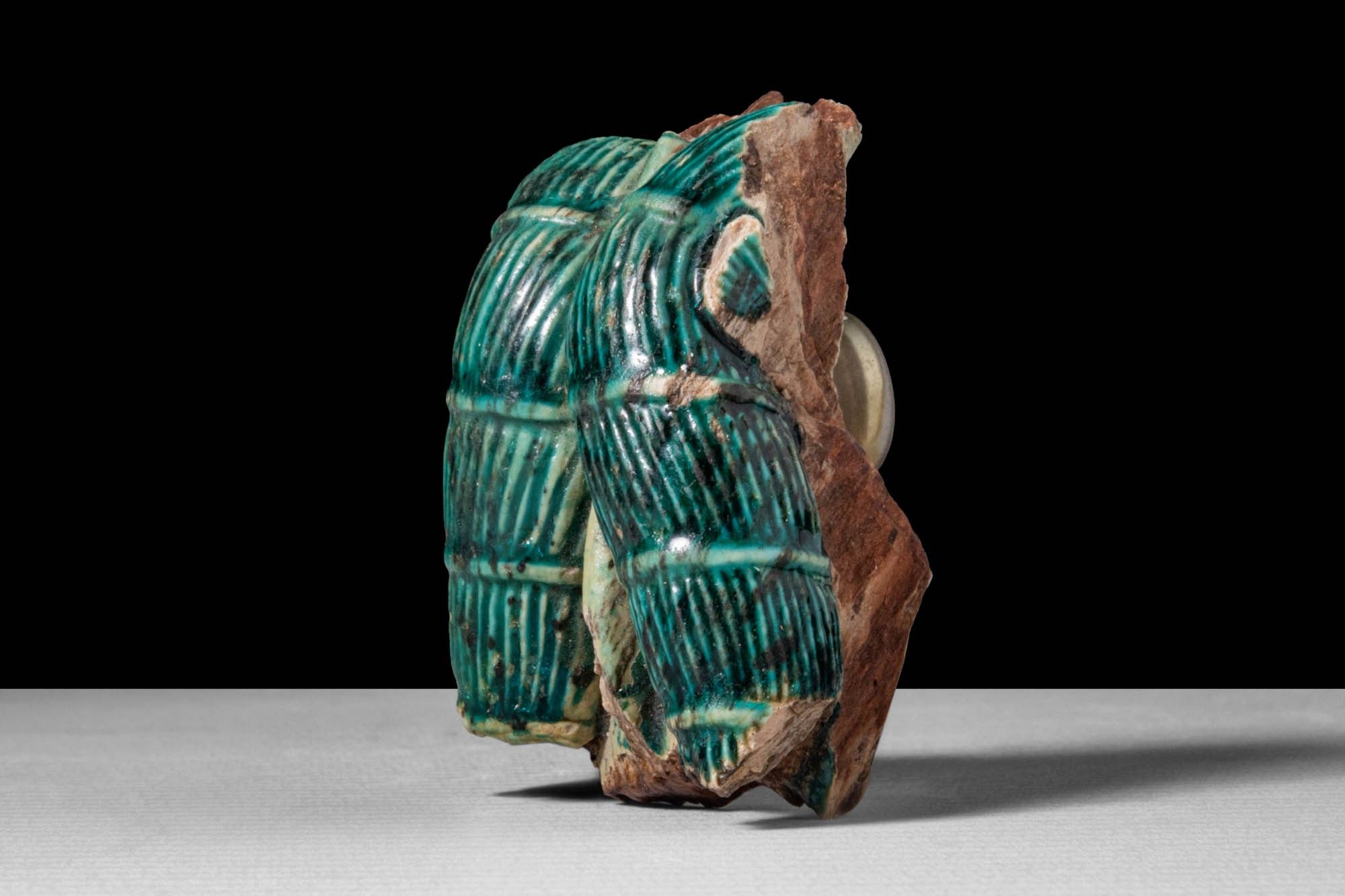 EGYPTIAN GLAZED STEATITE FRAGMENT OF A HATHORIC DOUBLE WIG.