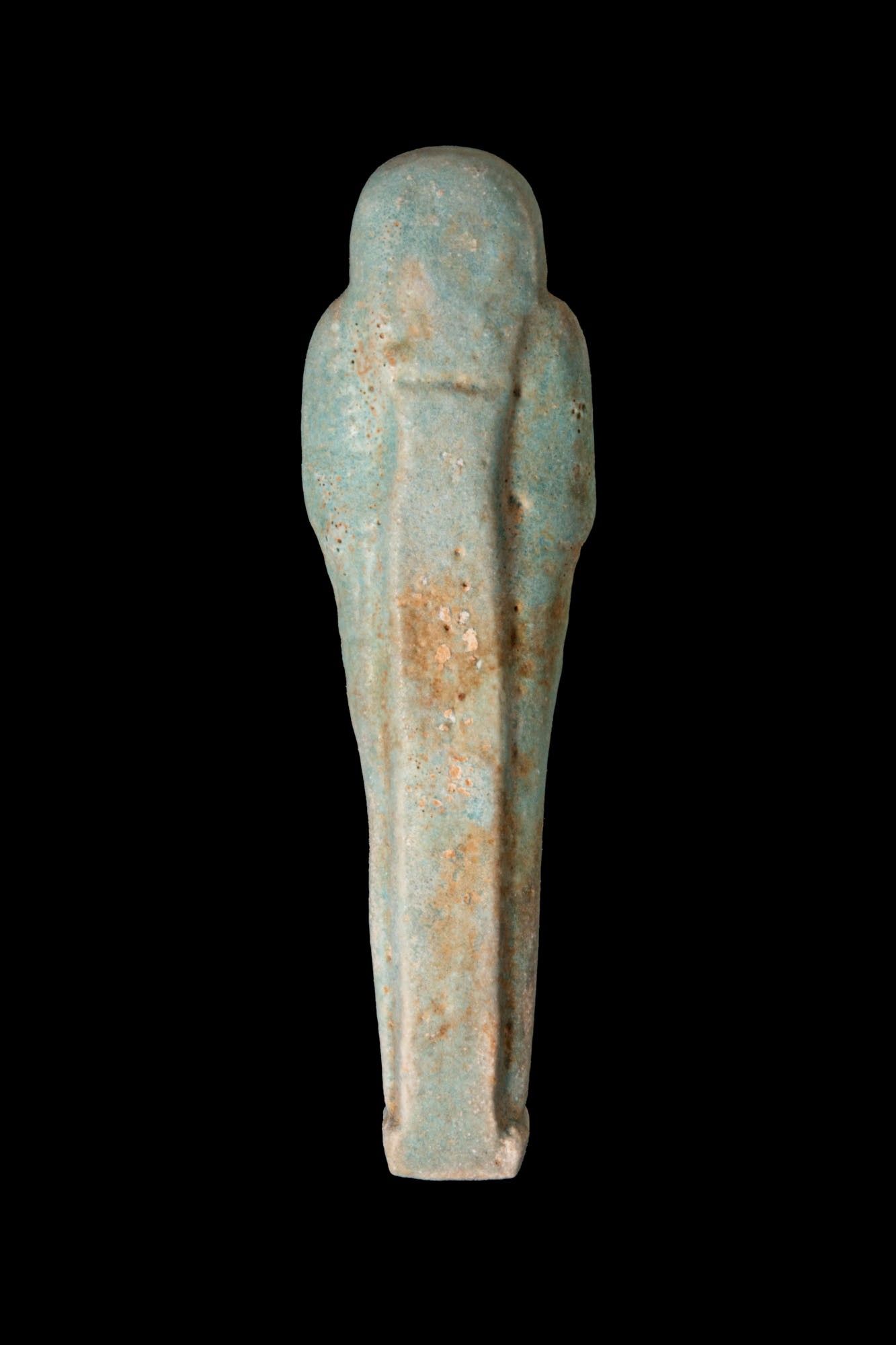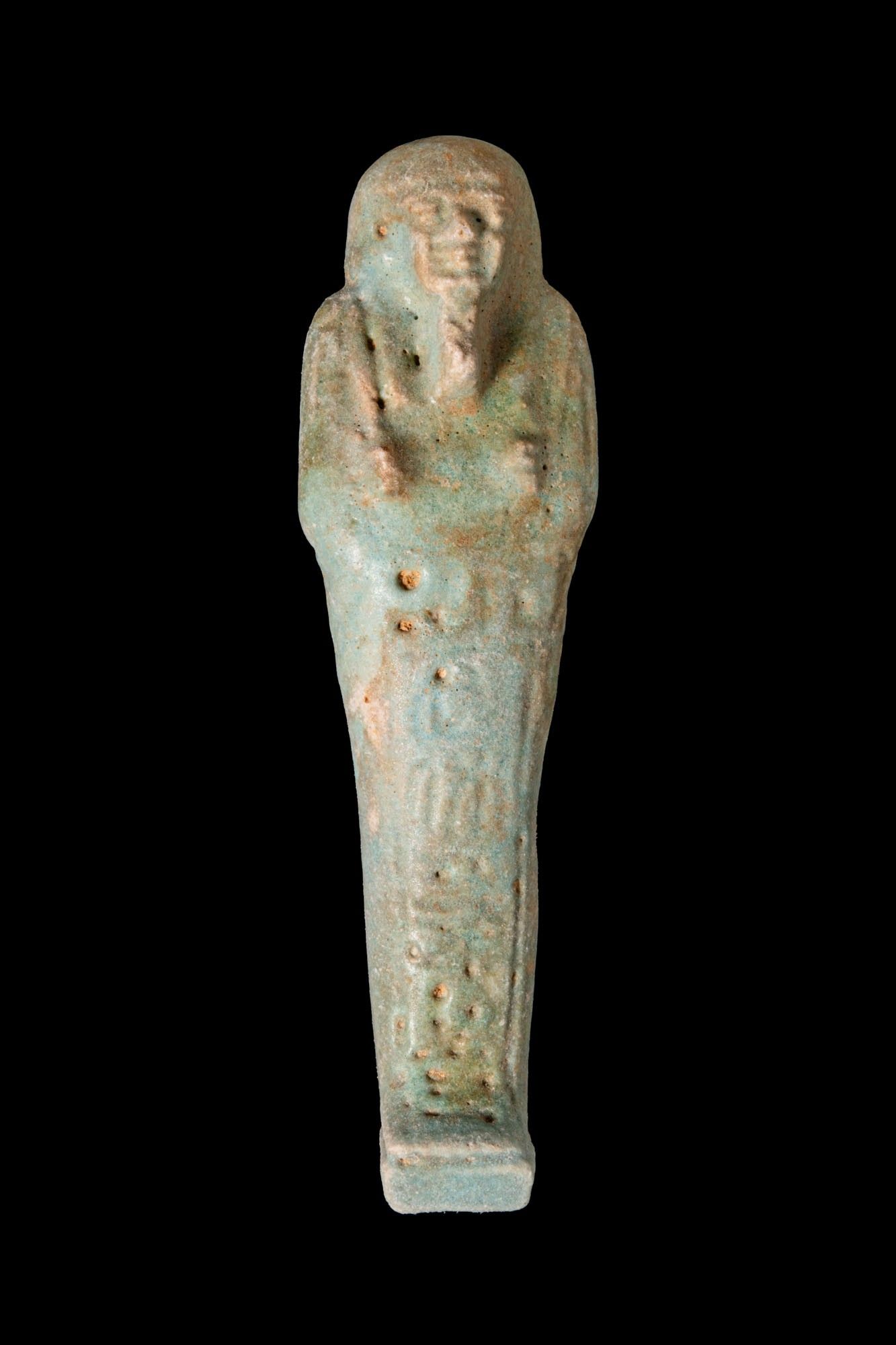 EGYPTIAN FAIENCE USHABTI WITH INSCRIPTION.