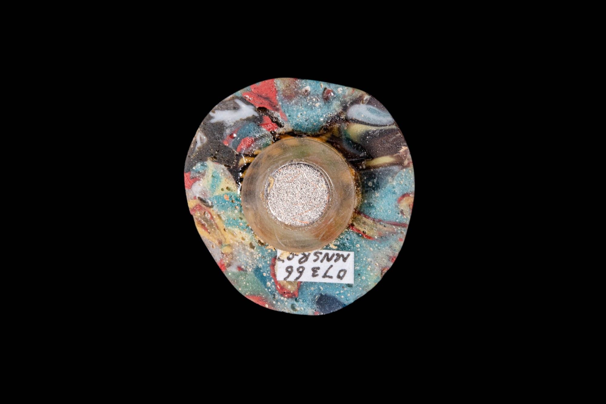 Ca. 100 BC - AD 100. A circular mosaic glass inlay with a complex multicoloured design, created by fusing preformed glass canes. Reviewed by Simone Musso, consultant curator for Egyptian antiquities at the Stibbert Museum, Florence, Italy, member of the Nuri Archaeological Expedition. For similar see: Christie's, Live Auction, 7758, The Groppi Collection, 26 April 2012, Lot 74. Size: 21mm x 20mm; Weight: 3g Provenance: Prince collection, 1990s-2014; Ex. Mansour gallery. This item has been cleared against the Art Loss Register database and comes with a confirmation letter.