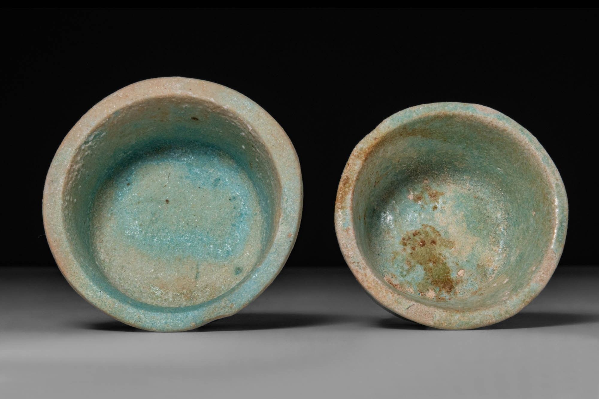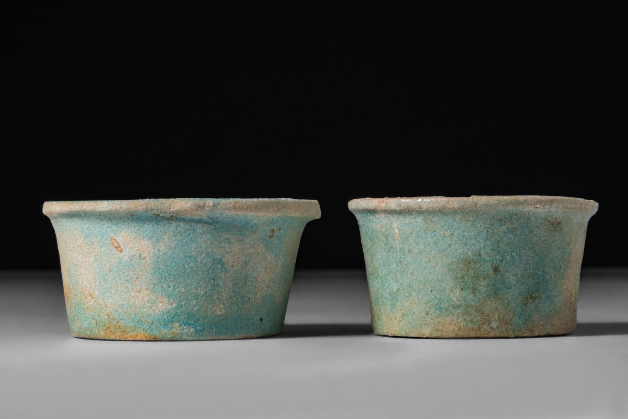 Premium PAIR OF EGYPTIAN FAIENCE OFFERING CUPS.