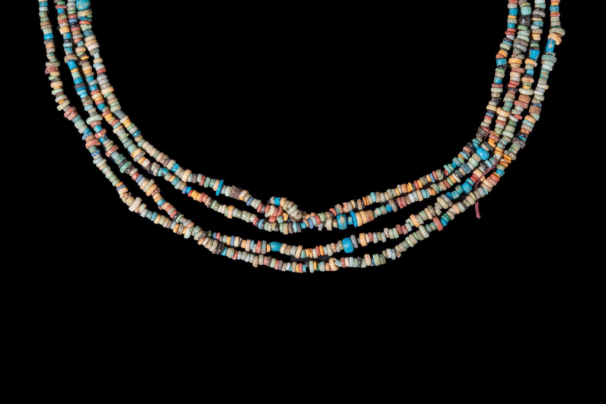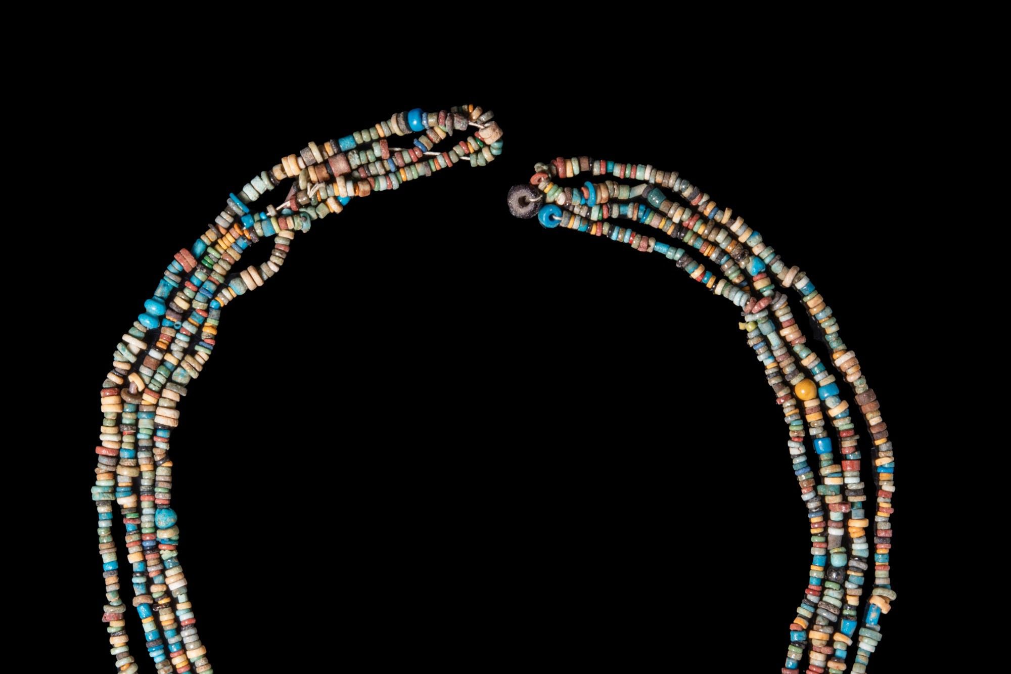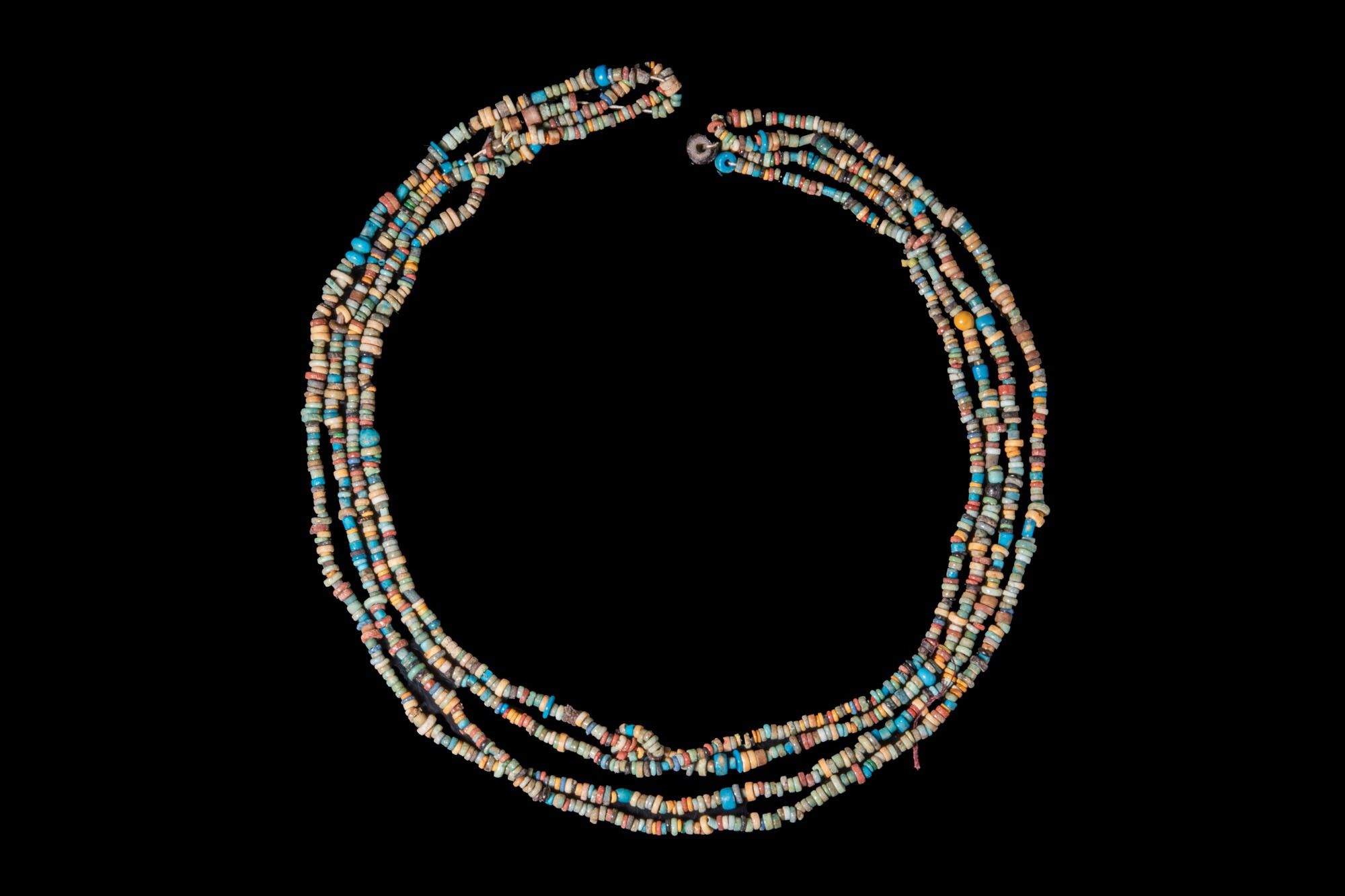 EGYPTIAN FAIENCE NECKLACE WITH SEED BEADS.