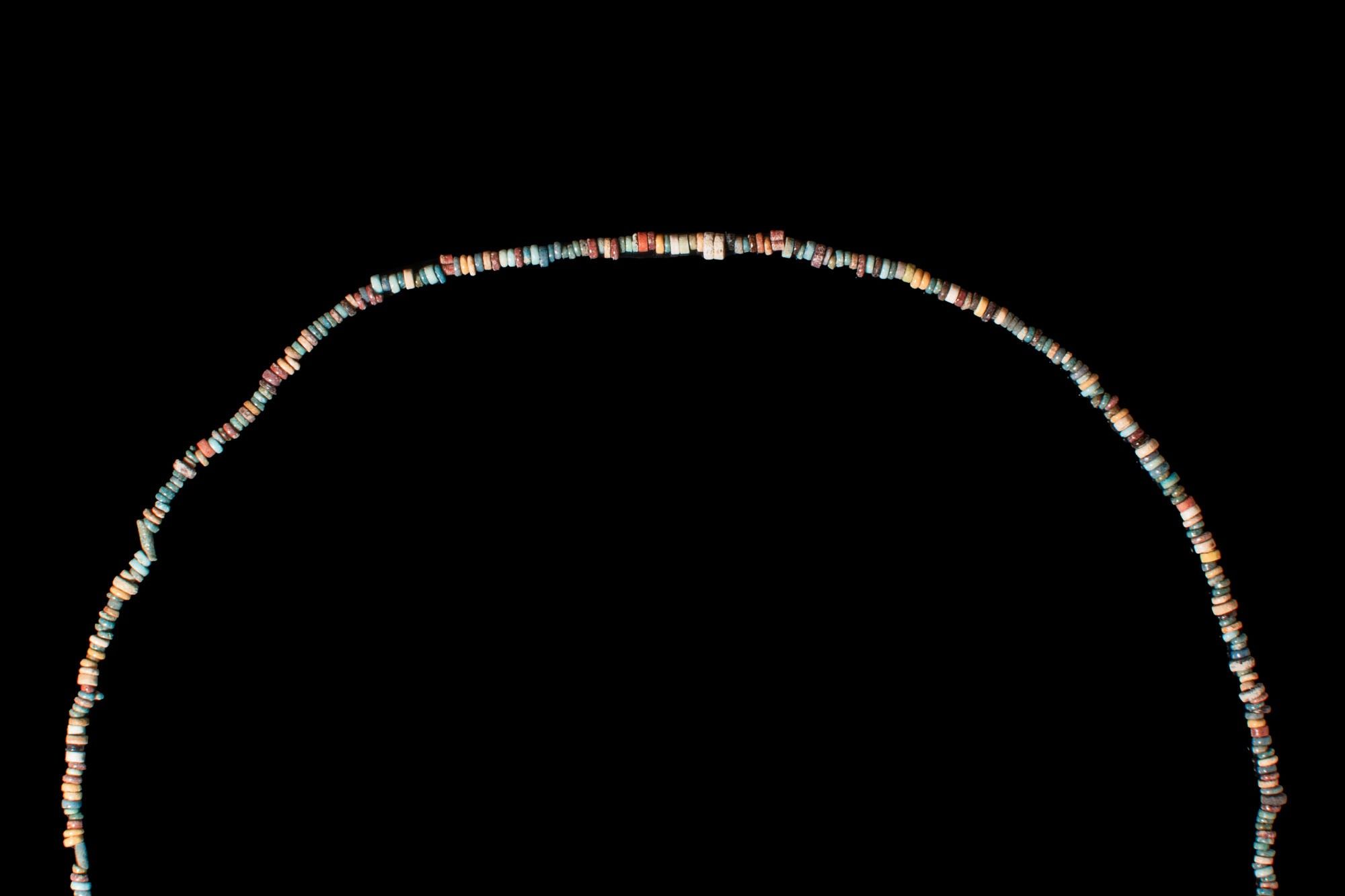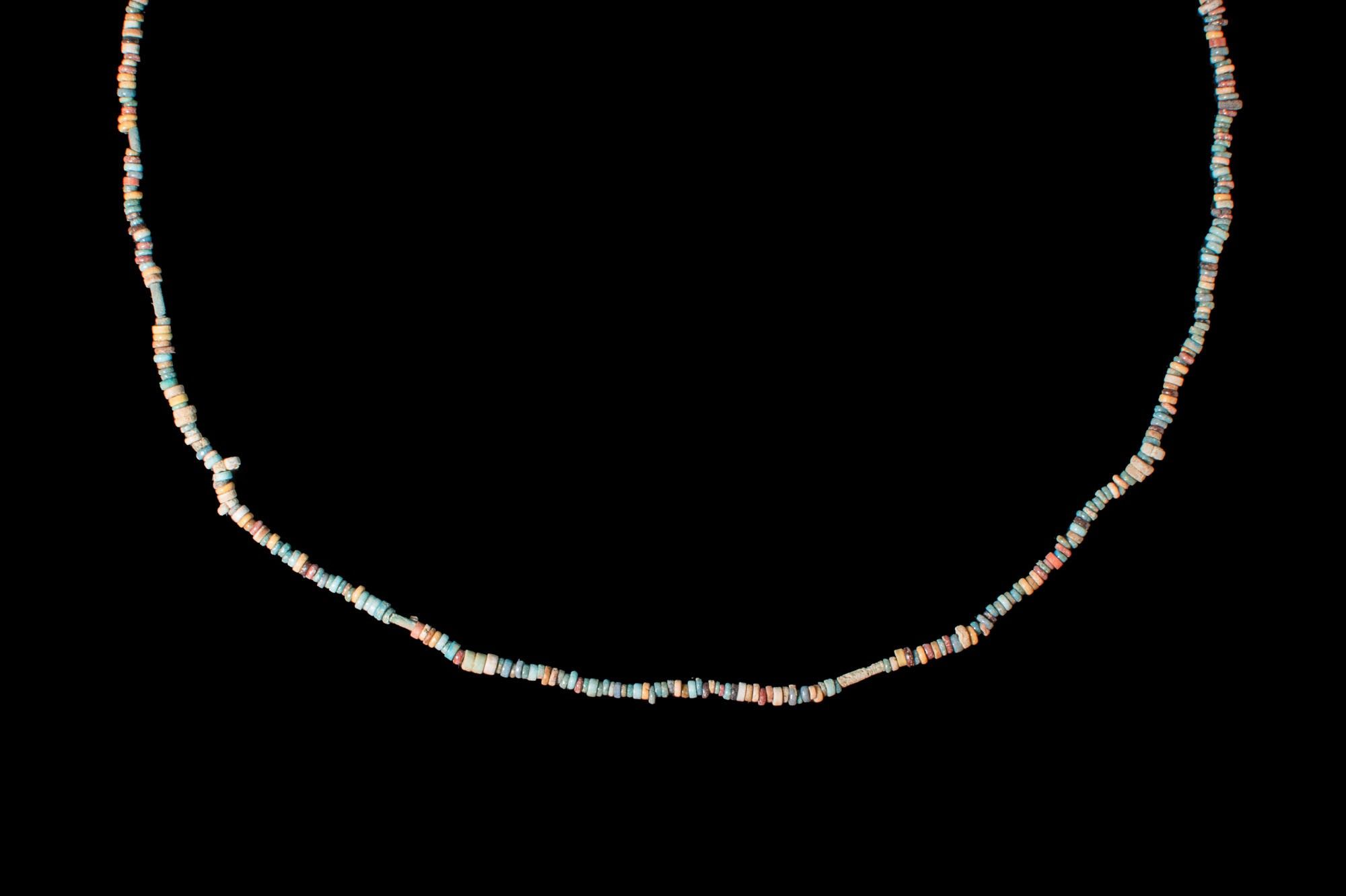 EGYPTIAN FAIENCE NECKLACE WITH SEED BEADS.