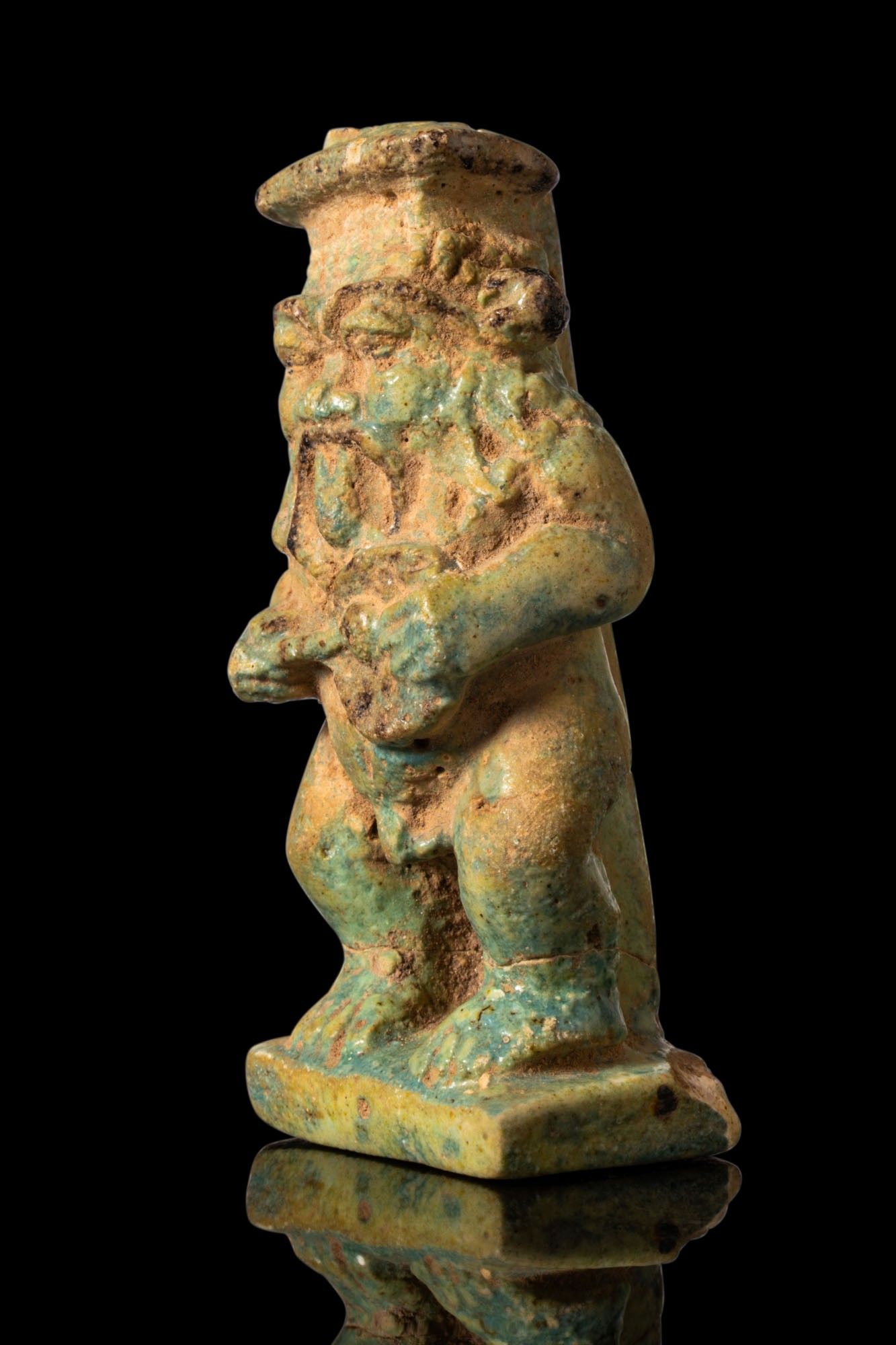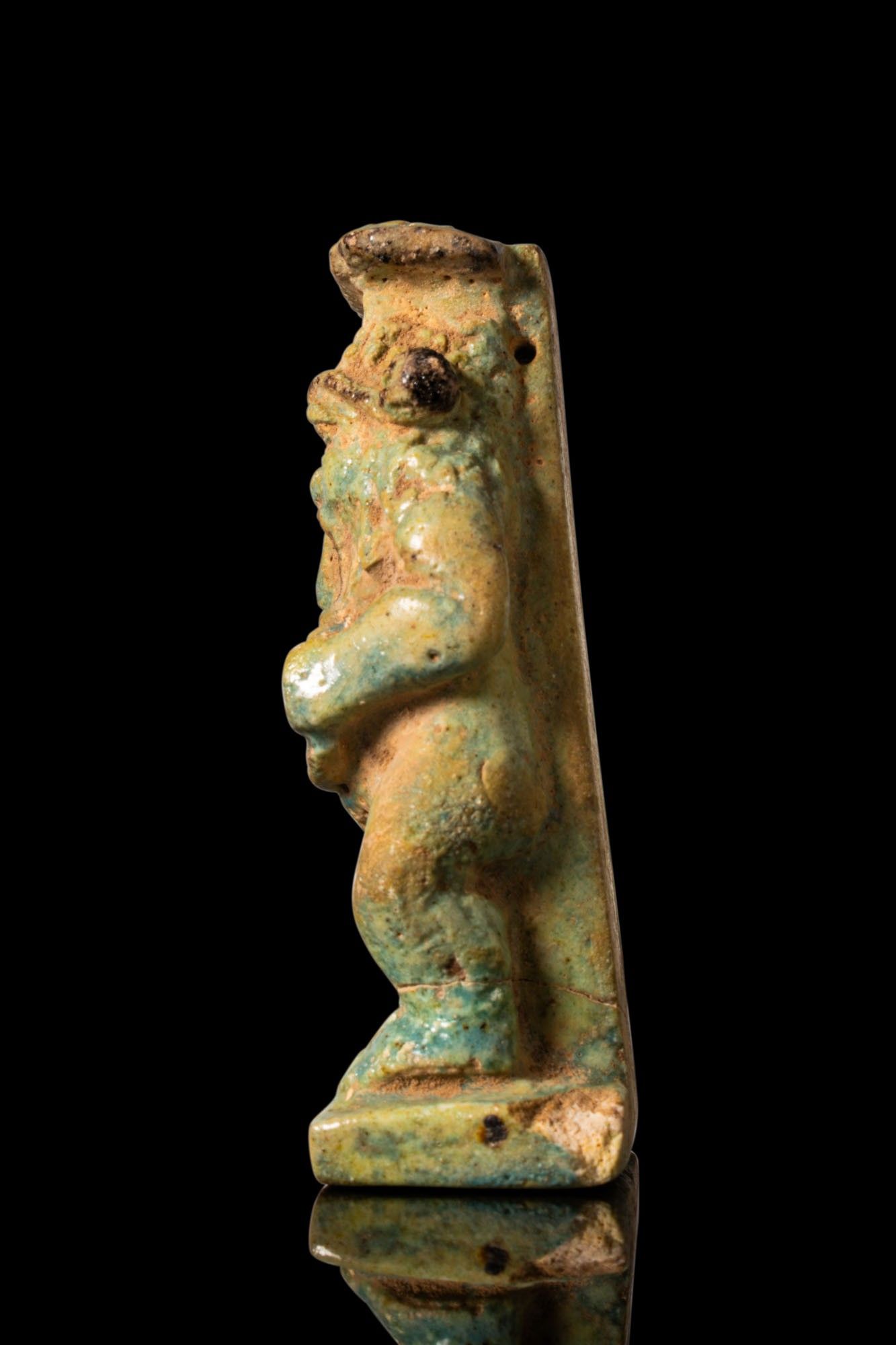 LARGE EGYPTIAN FAIENCE BES AMULET. Late Period, Ca. 664 - 33…