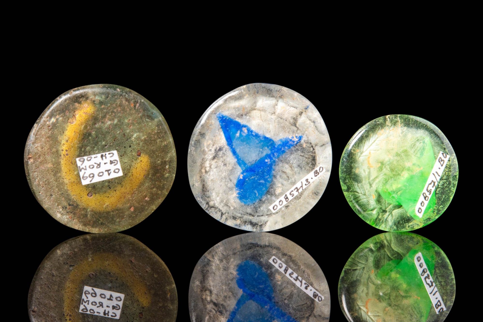 RARE ROMANO - EGYPTIAN GLASS STAMPED DISC AMULETS.