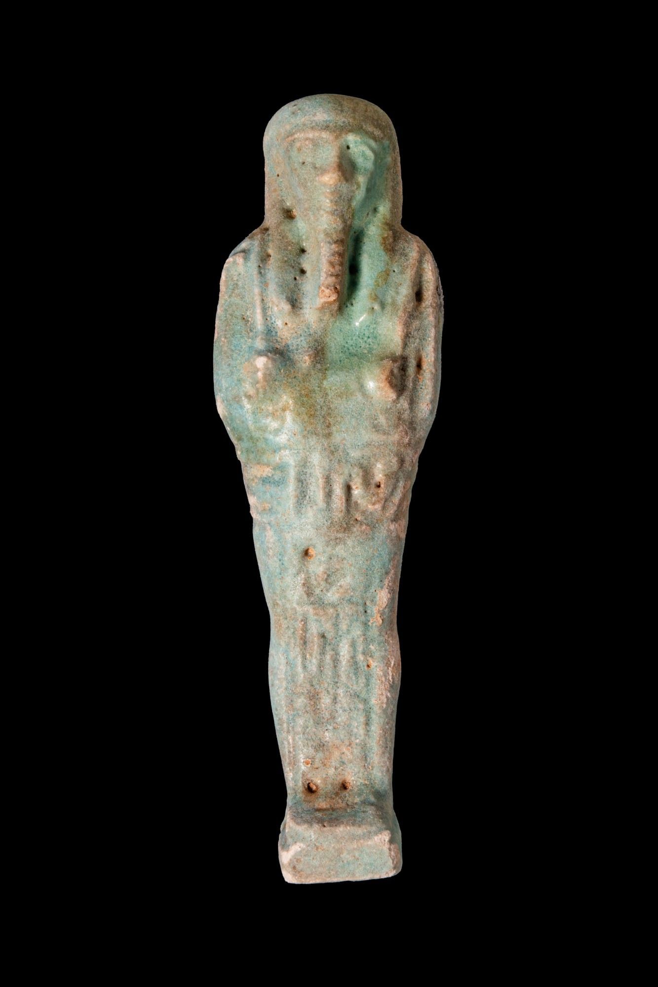 EGYPTIAN FAIENCE USHABTI WITH INSCRIPTION. Late Period, 26th…