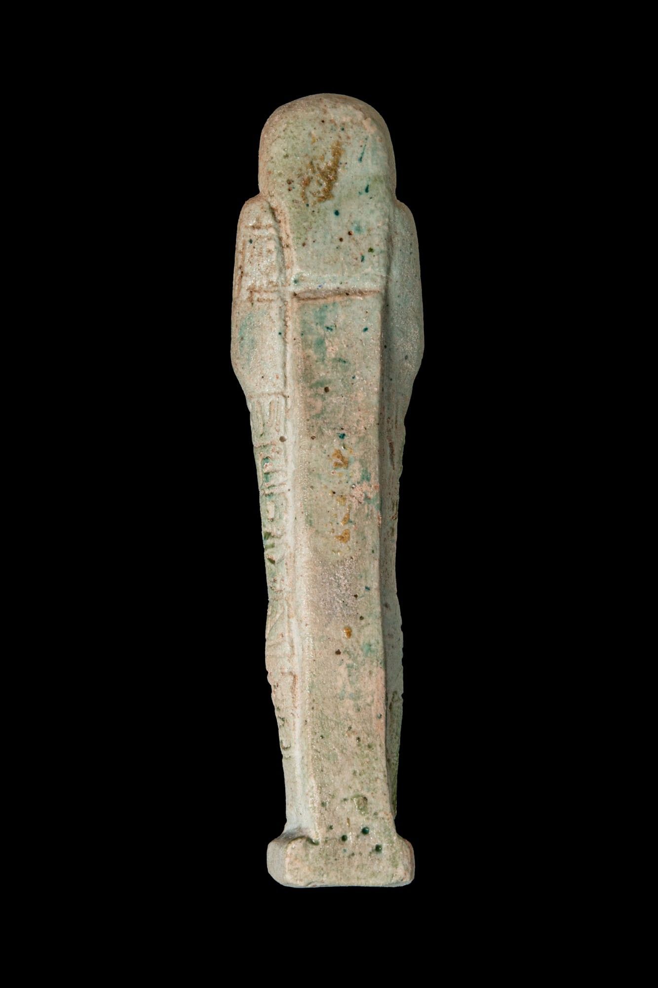 EGYPTIAN FAIENCE USHABTI WITH INSCRIPTION.