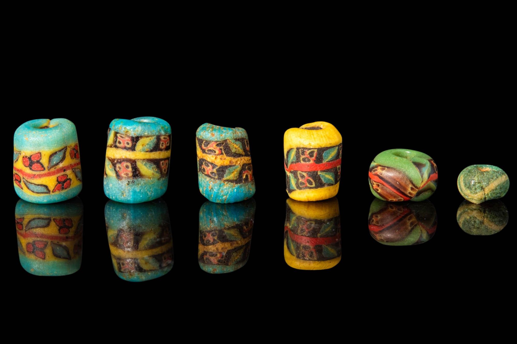 SET OF ROMANO - EGYPTIAN MOSAIC GLASS BEADS.
