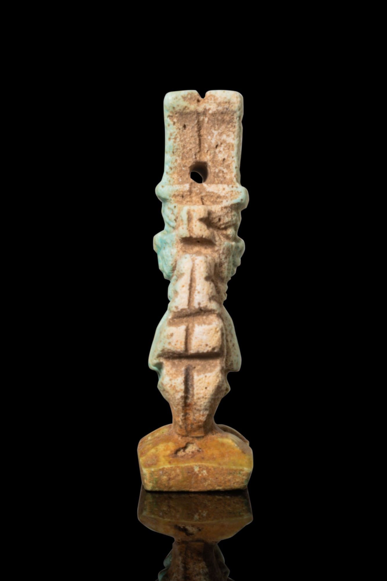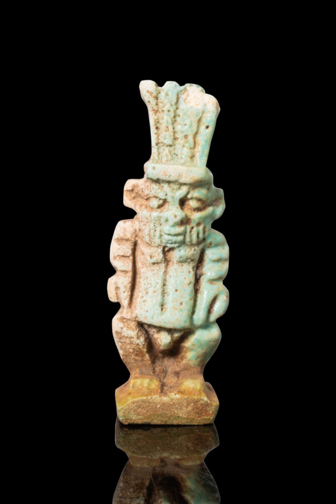 EGYPTIAN FAIENCE BES AMULET.