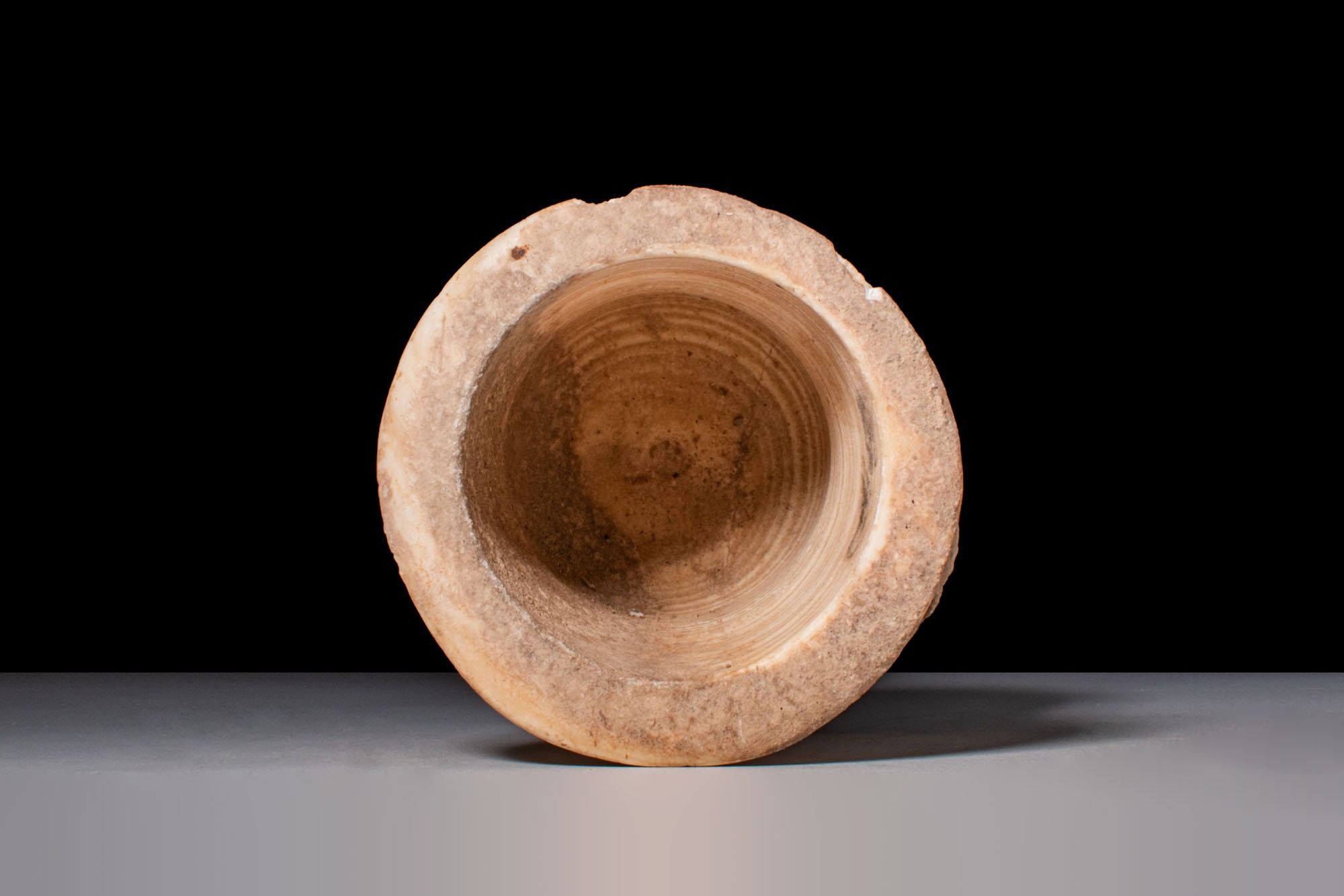 LARGE EGYPTIAN BANDED CHALCITE VESSEL. New Kingdom, Ca. 1550…