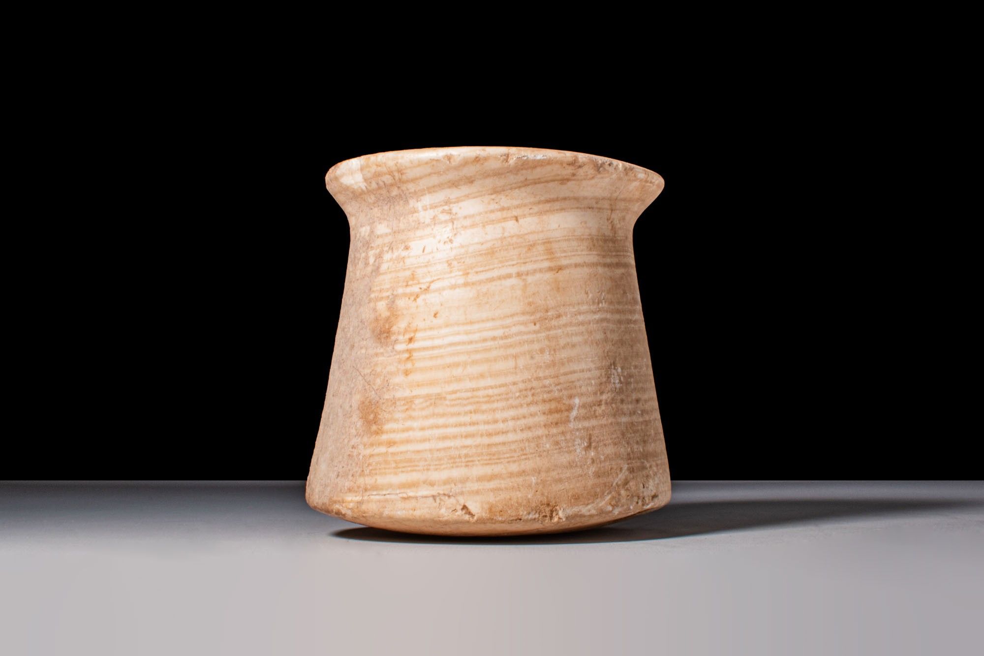 LARGE EGYPTIAN BANDED CHALCITE VESSEL.