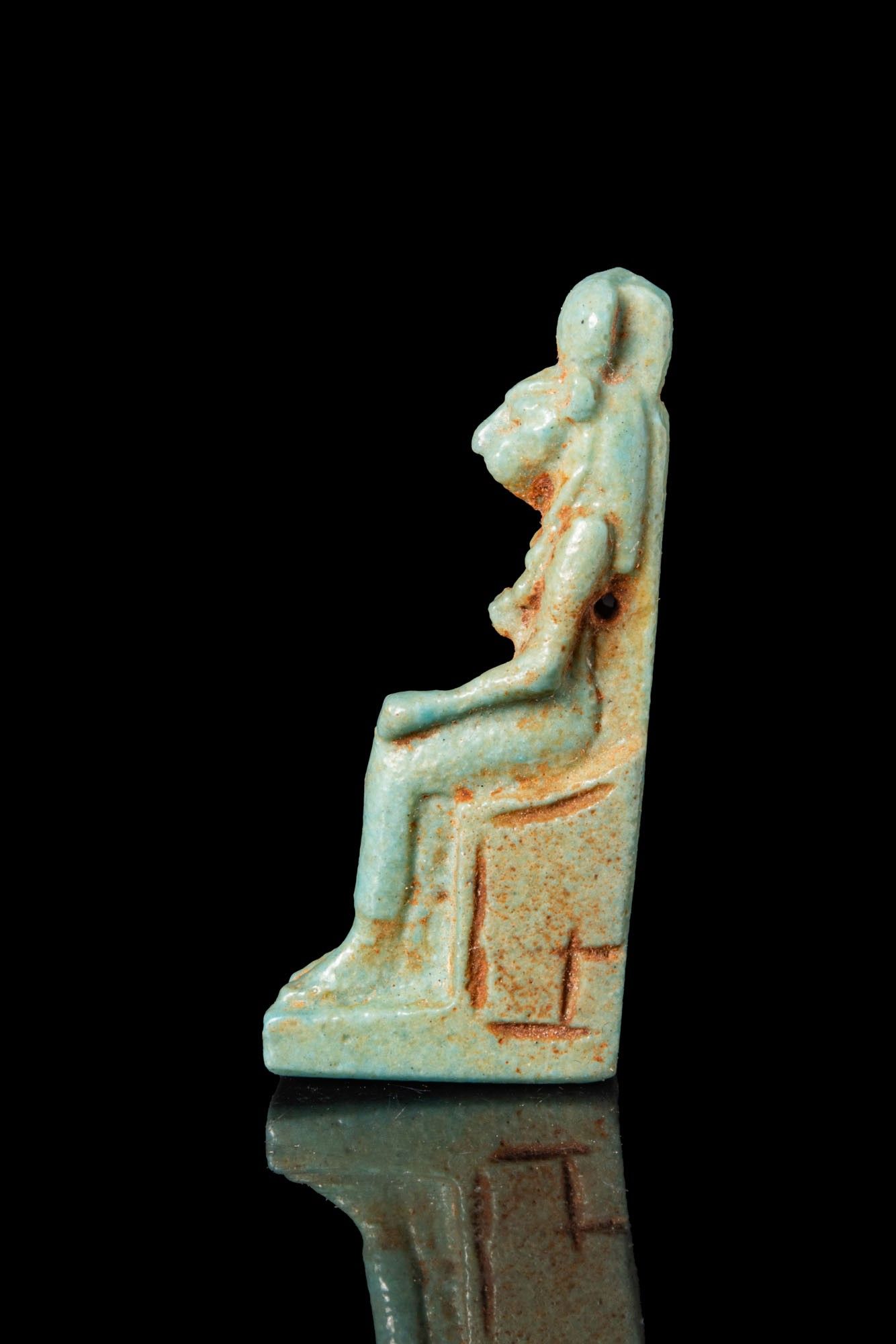 LARGE EGYPTIAN FAIENCE SEATED SEKHMET AMULET.