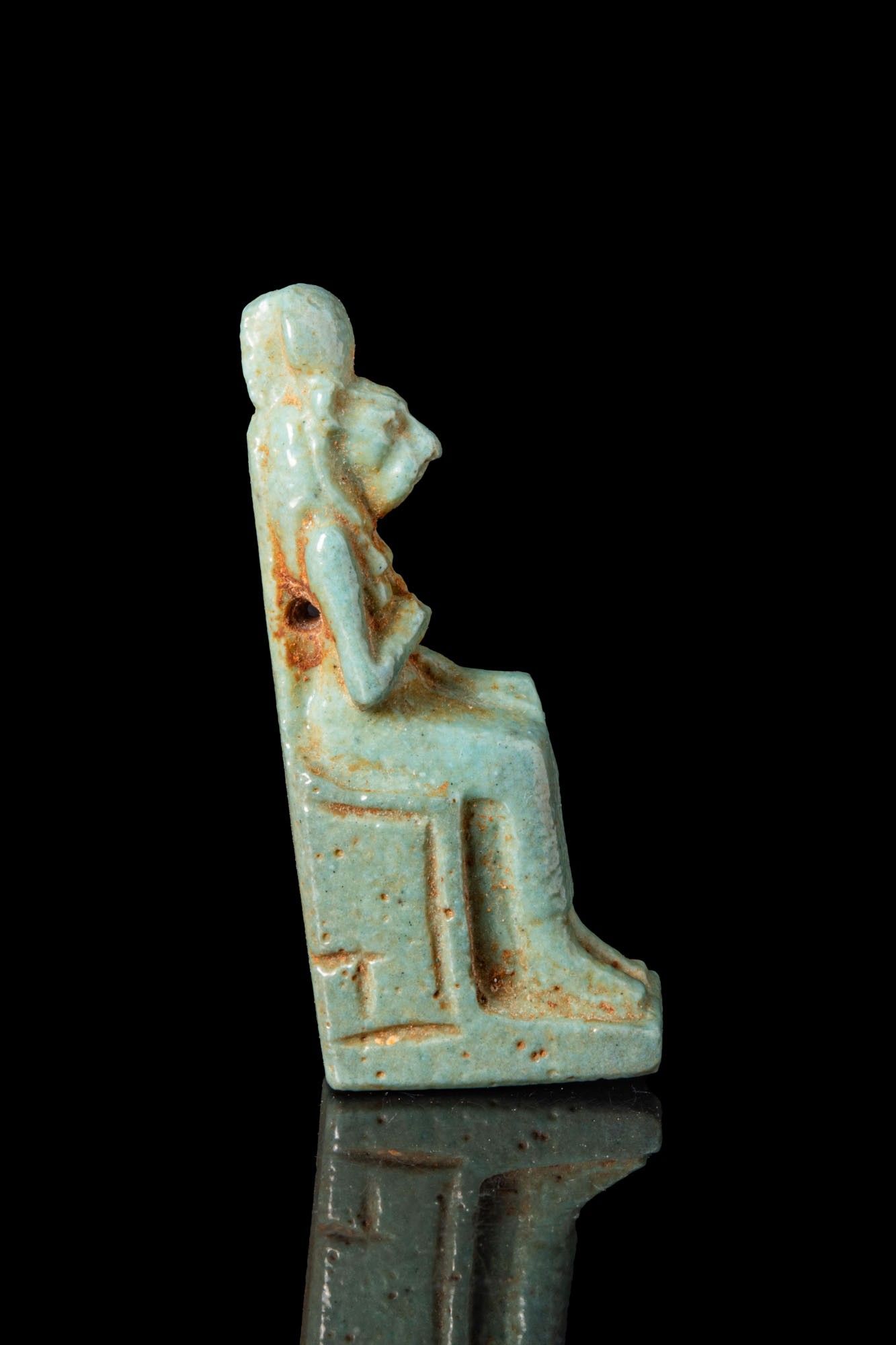 LARGE EGYPTIAN FAIENCE SEATED SEKHMET AMULET. Late Period, C…