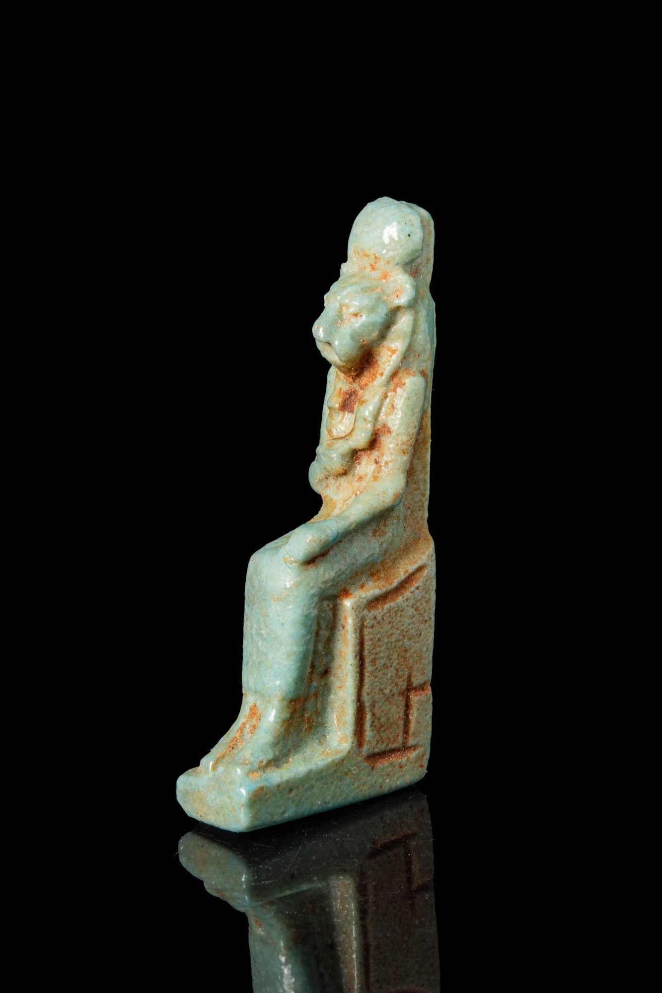 Premium LARGE EGYPTIAN FAIENCE SEATED SEKHMET AMULET. Late Period, C…
