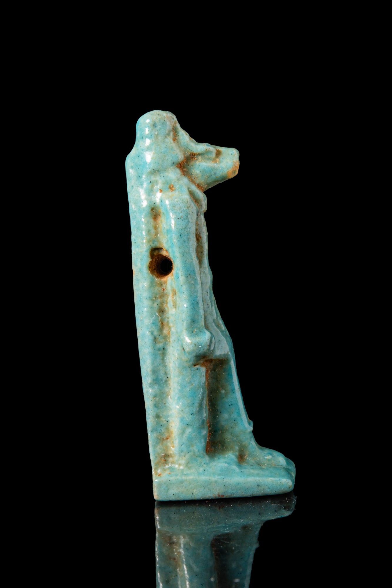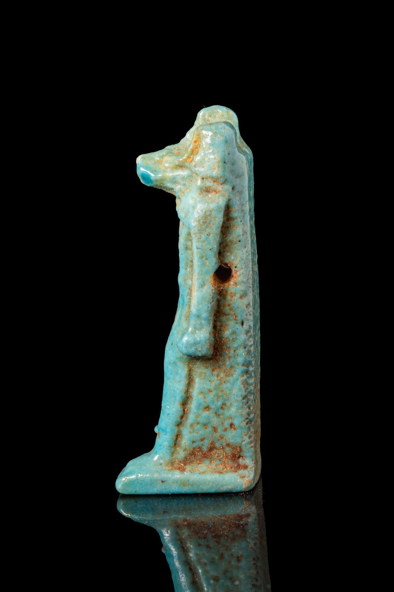EGYPTIAN FAIENCE ANUBIS AMULET.