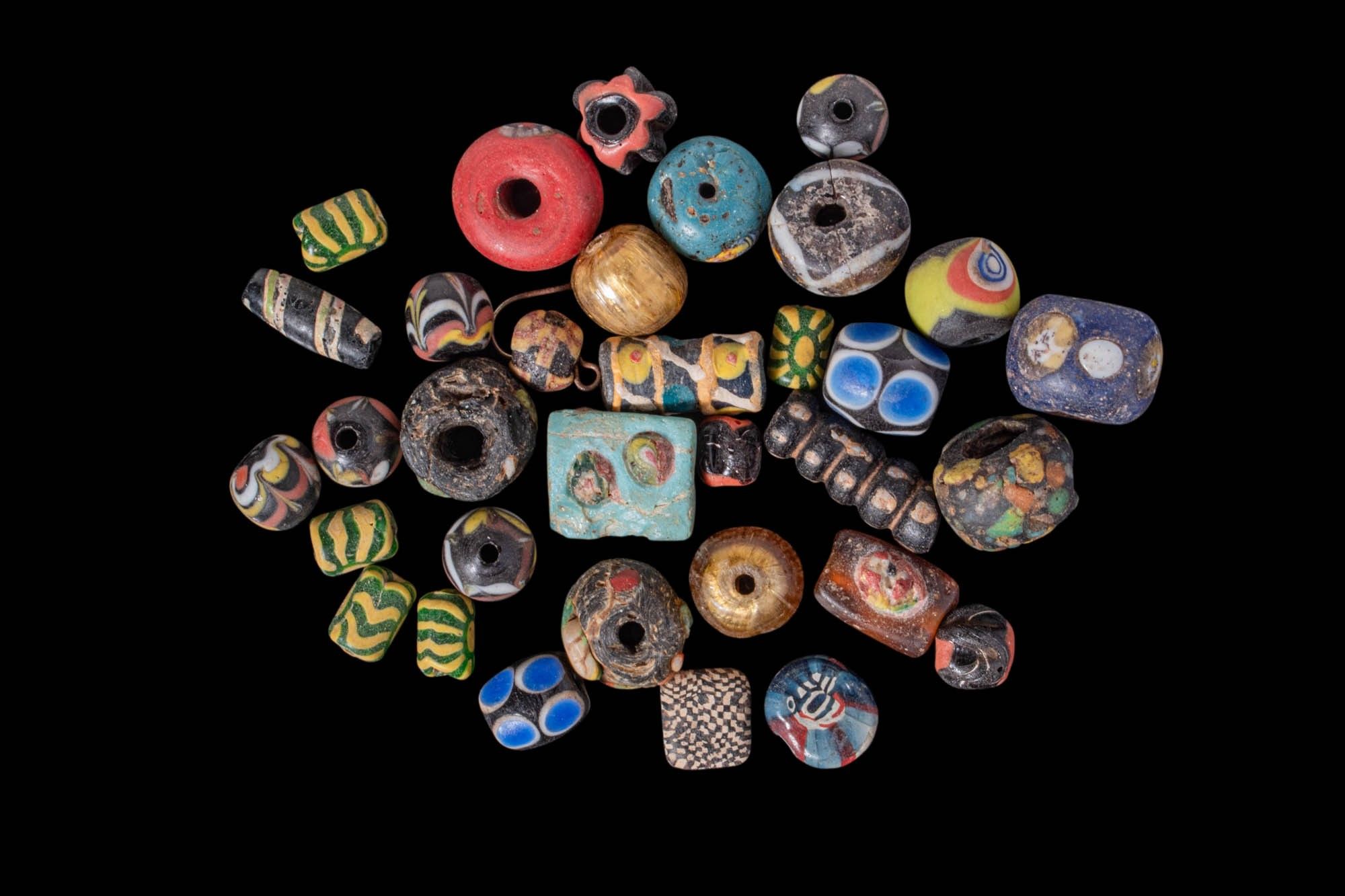 COLLECTION OF HELLENISTIC MOSAIC GLASS BEADS.