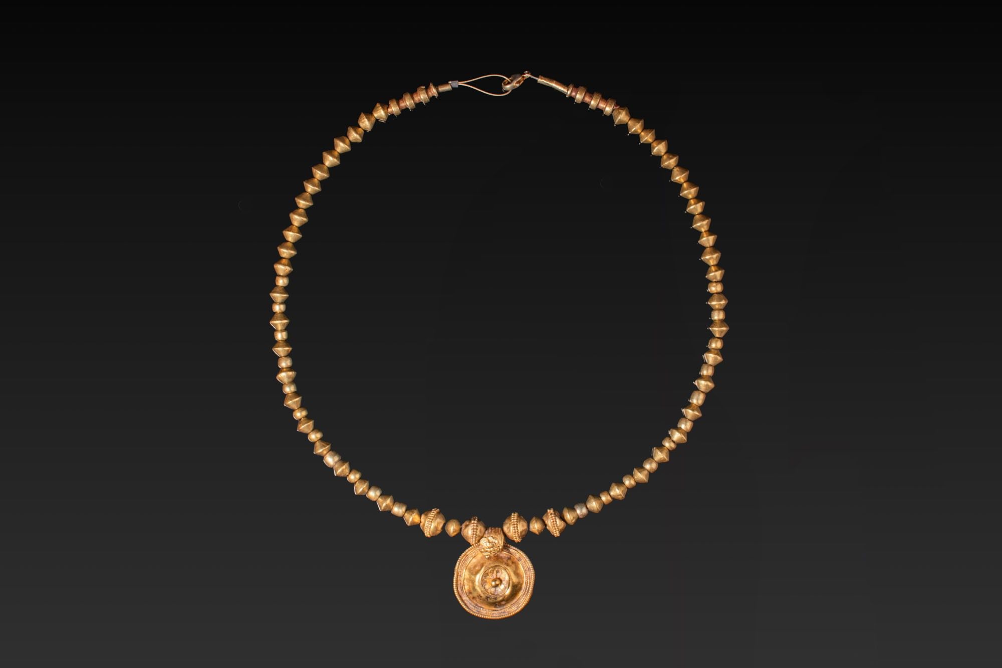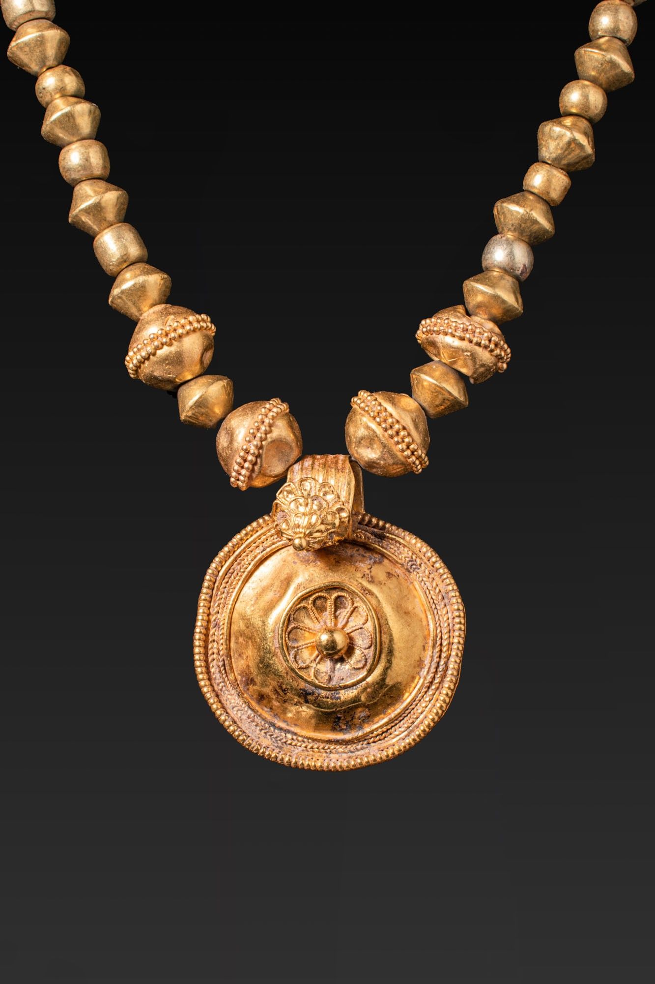 Premium HELLENISTIC GOLD NECKLACE WITH ROSETTE PENDANT. Ca. 400 - 20…