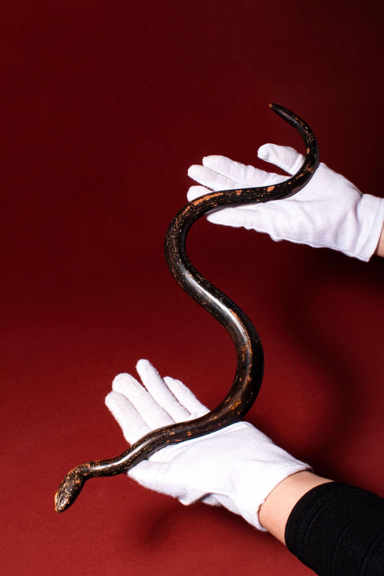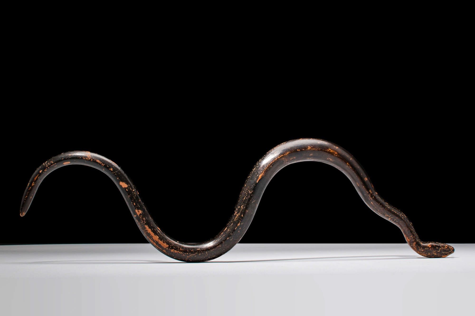 Premium RARE GREEK BLACK-GLAZED TERRACOTTA SNAKE - TL TESTED. Ca. 45…