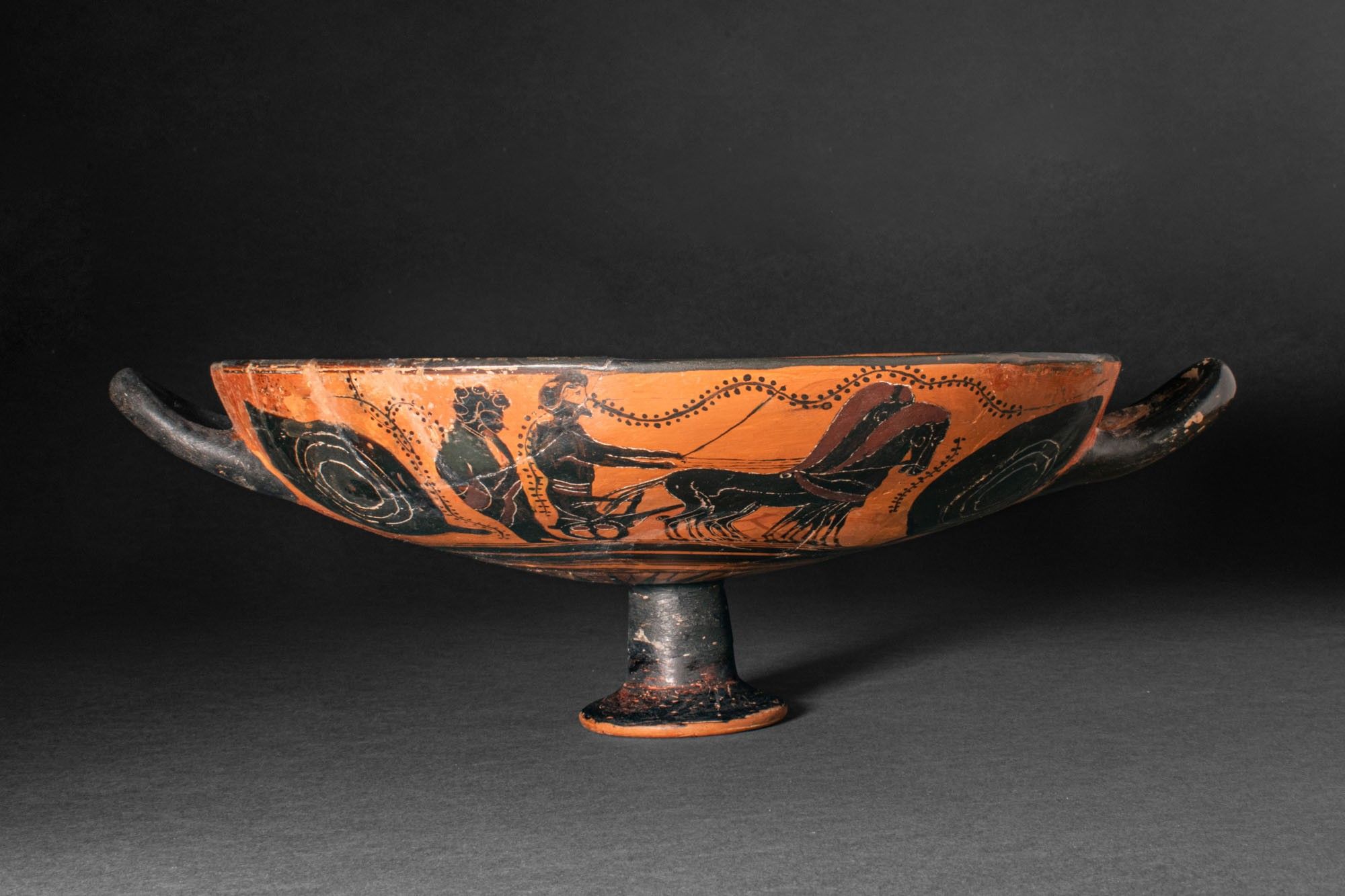 Premium RARE ATTIC BLACK-FIGURE KYLIX (EYE-CUP) WITH DIONYSIAC SCENE…