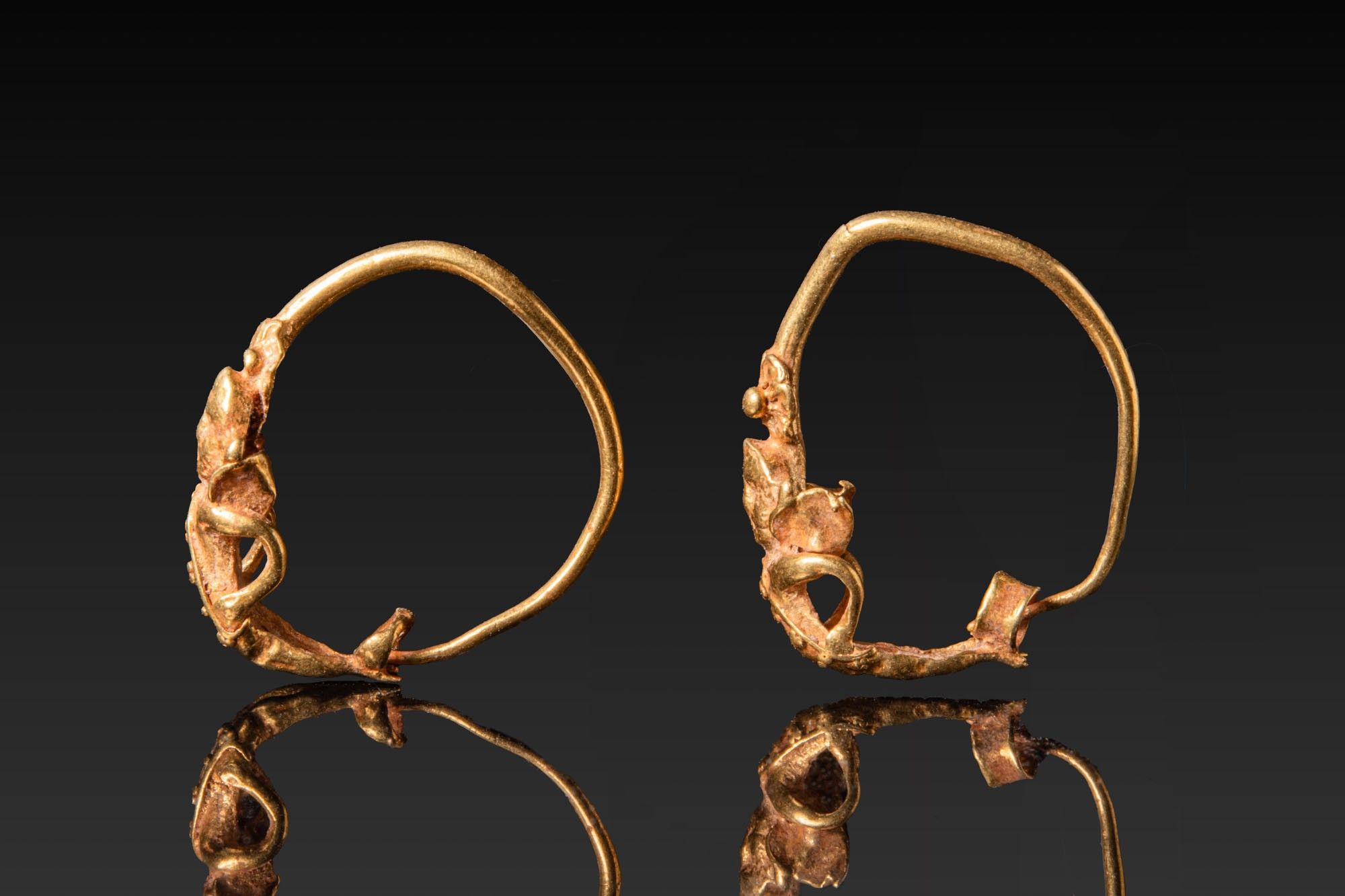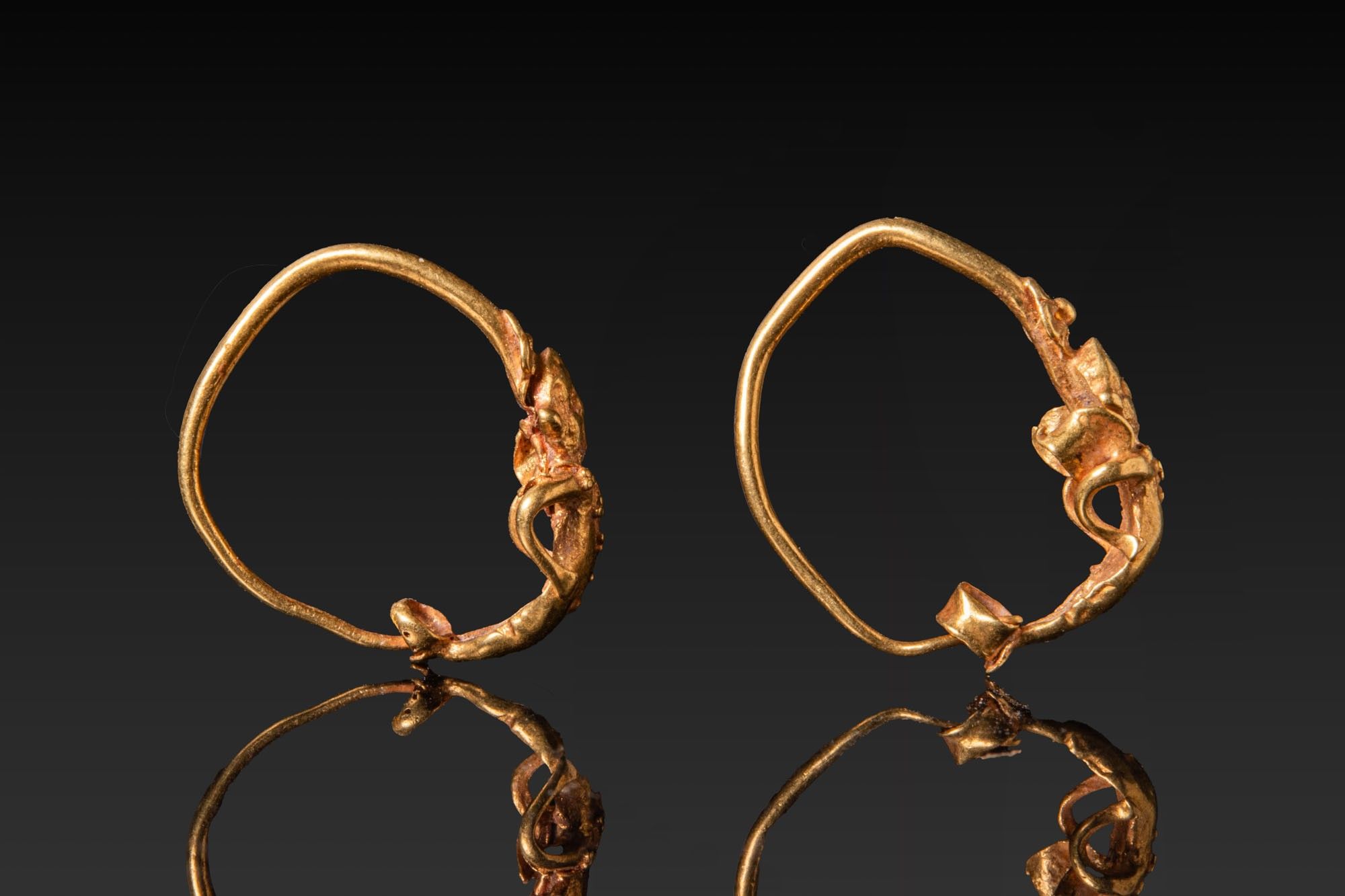 Premium MATCHED PAIR OF GREEK GOLD EARRINGS WITH WINGED EROS. Ca. 20…