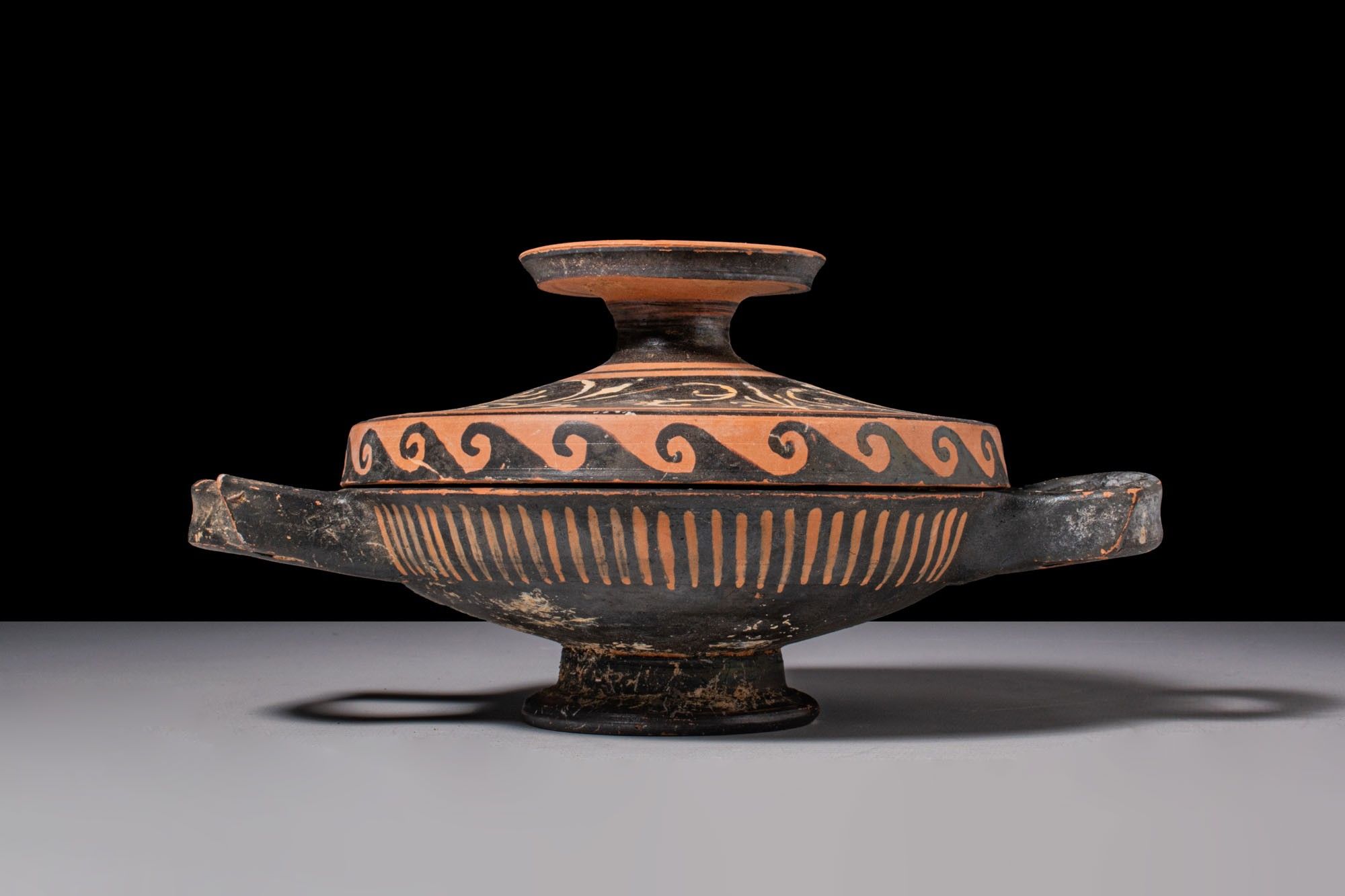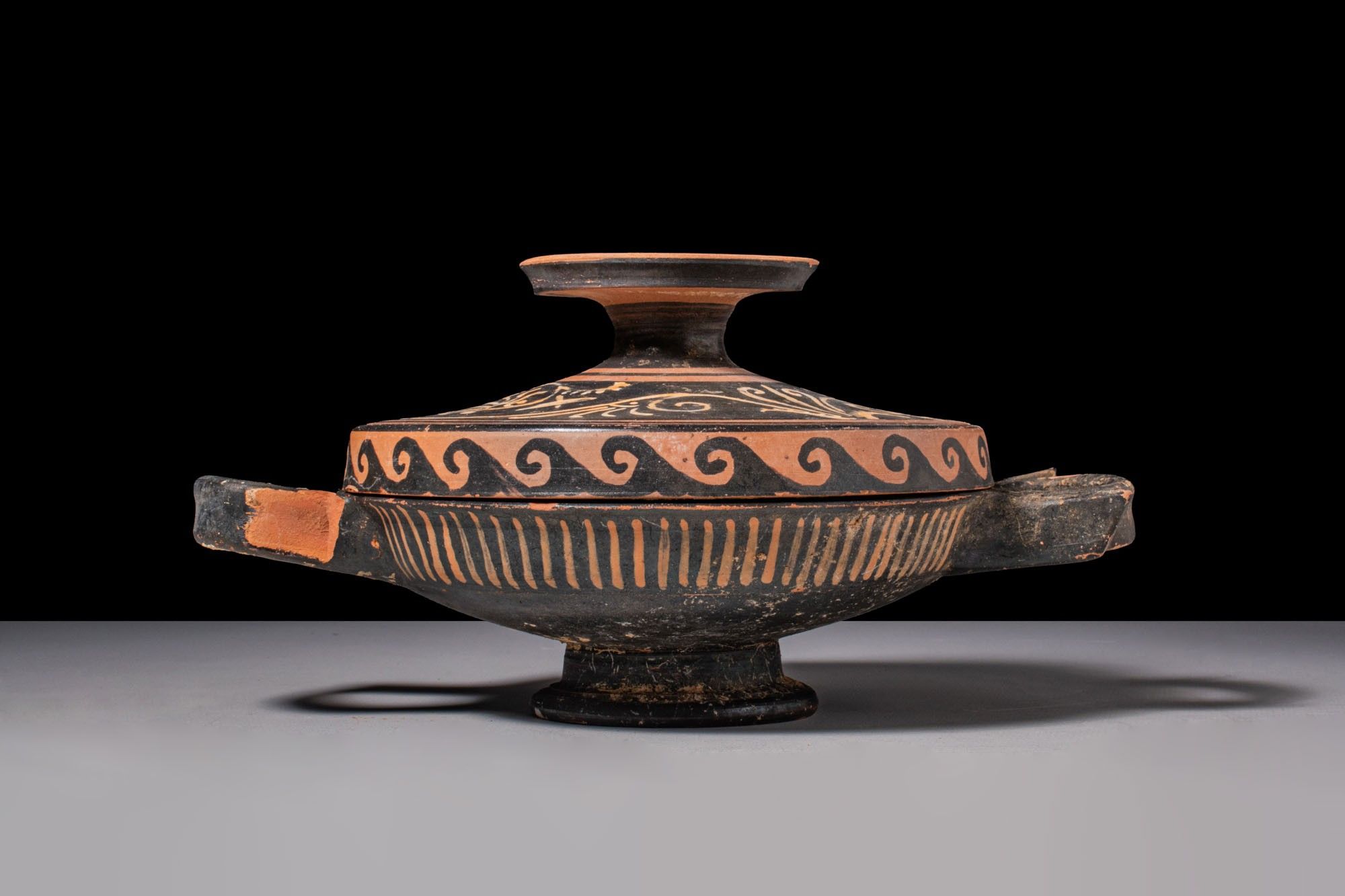 Premium APULIAN RED-FIGURE LEKANIS WITH WAVE MOTIF. Ca. 350 BC. A re…