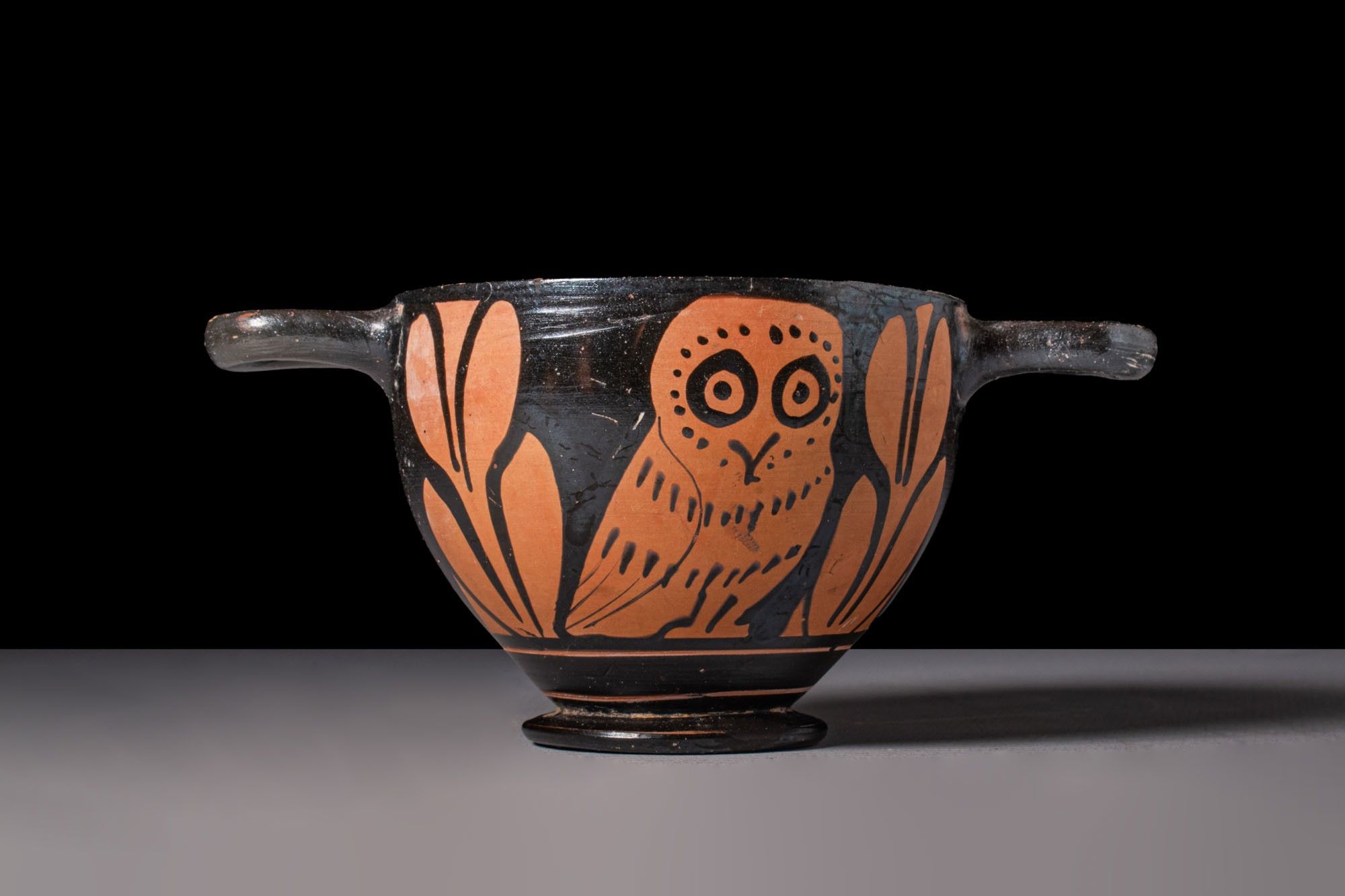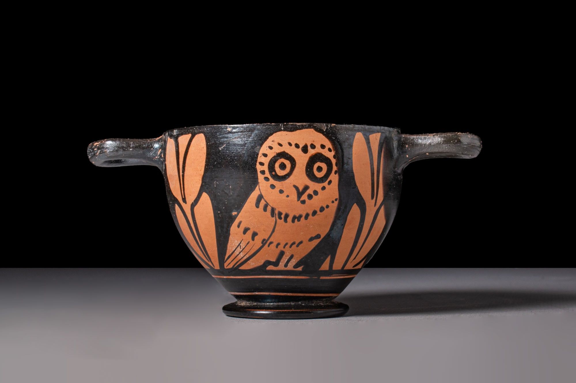 Premium ATTIC RED-FIGURE SKYPHOS WITH OWLS. Ca. 450 BC. A red-figure…