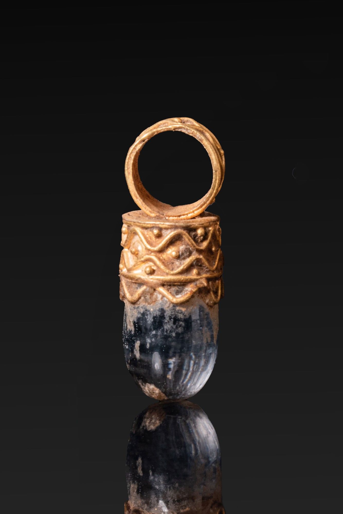 GREEK GOLD PENDANT WITH ROCK CRYSTAL AND GRANULATION. Ca. 50…
