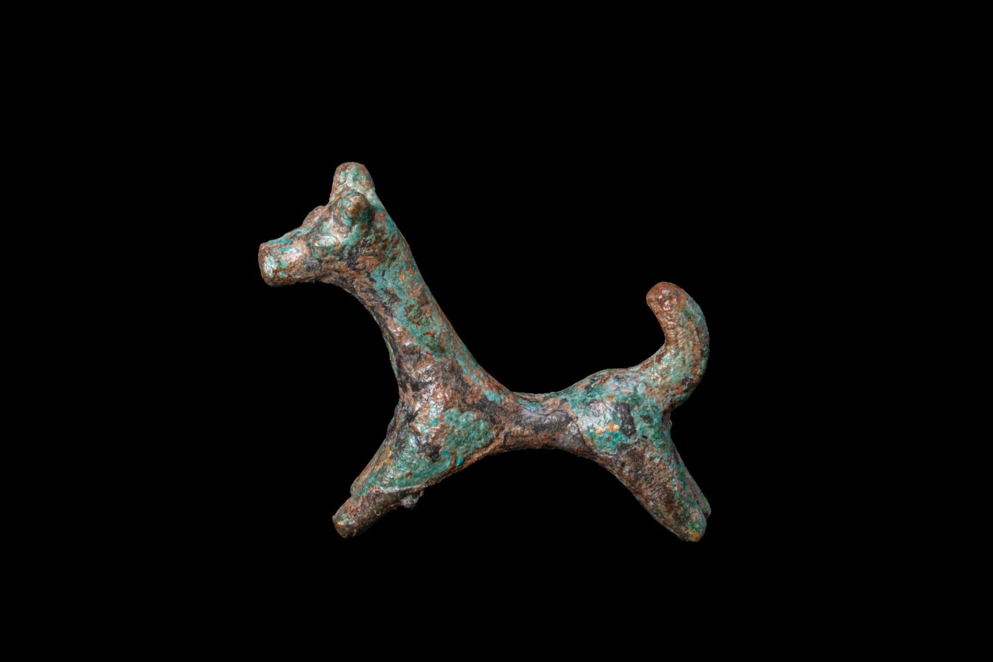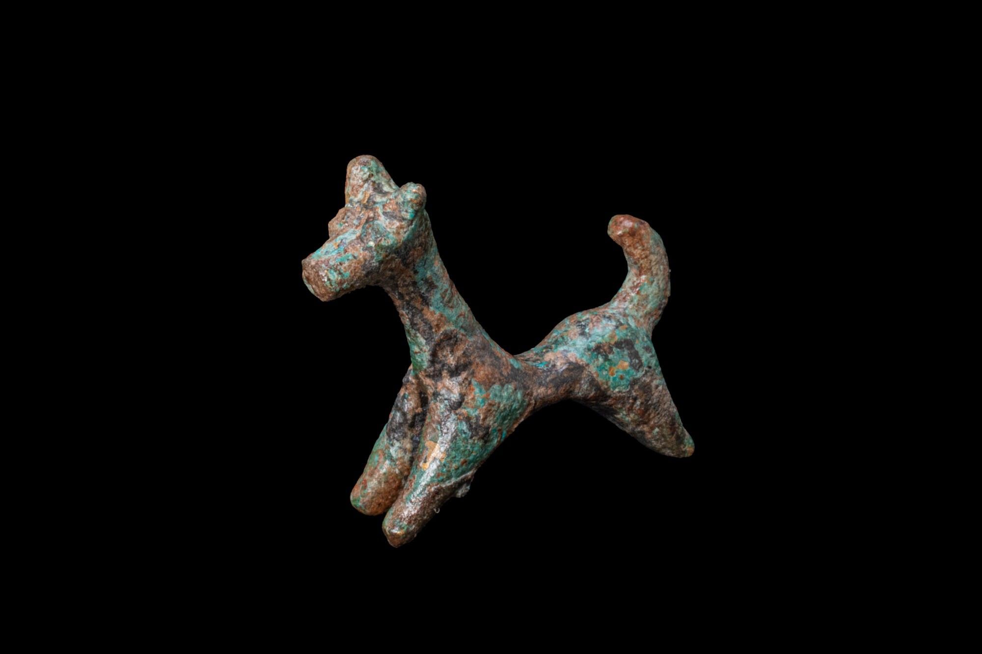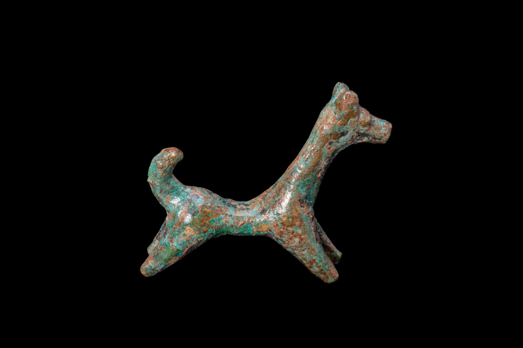 GREEK BRONZE DOG FIGURINE. Ca. 800 BC. A cast bronze figurin…