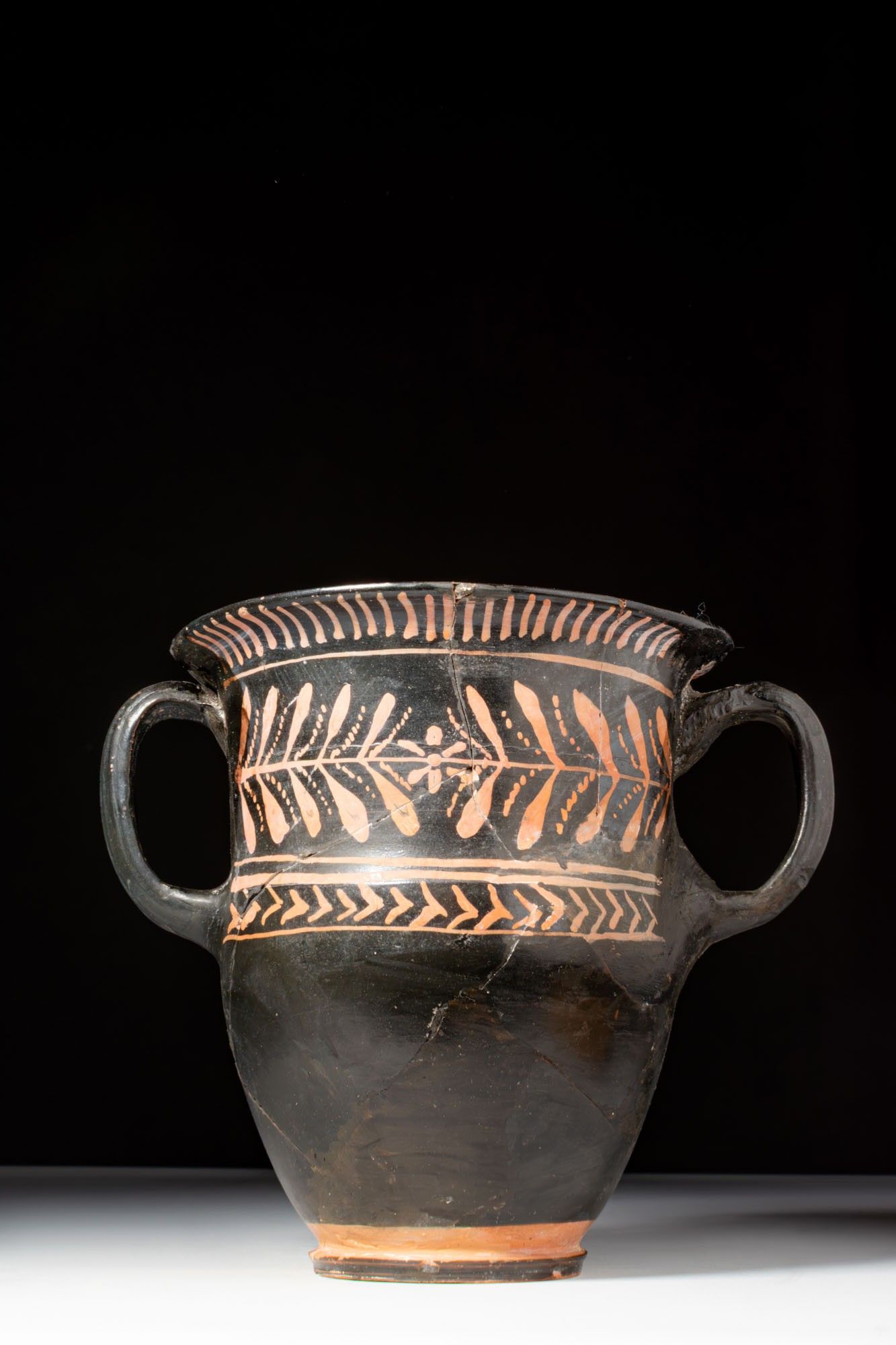 Premium LARGE XENON WARE KANTHAROS. Ca. 400 - 300 BC. A black-glazed…