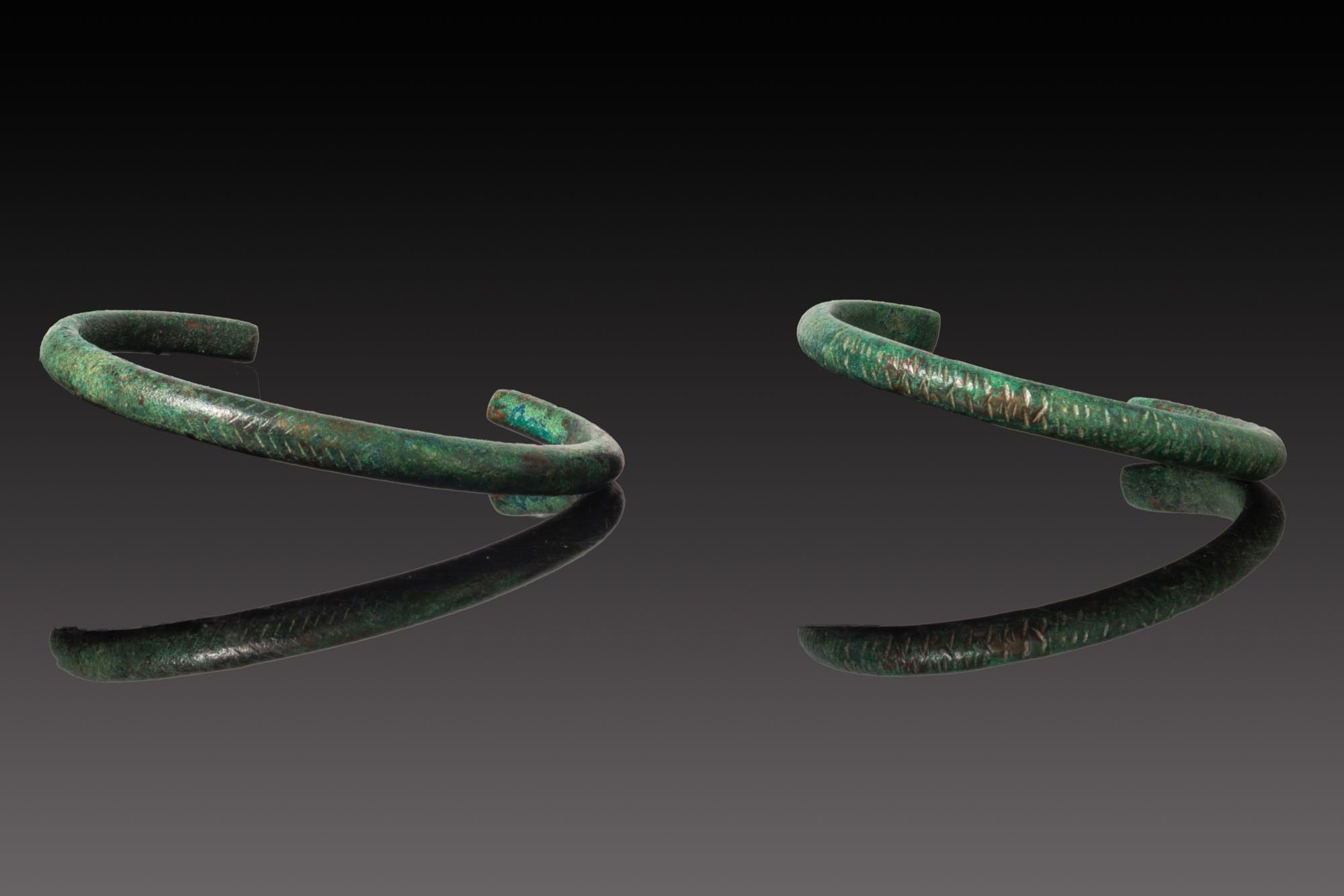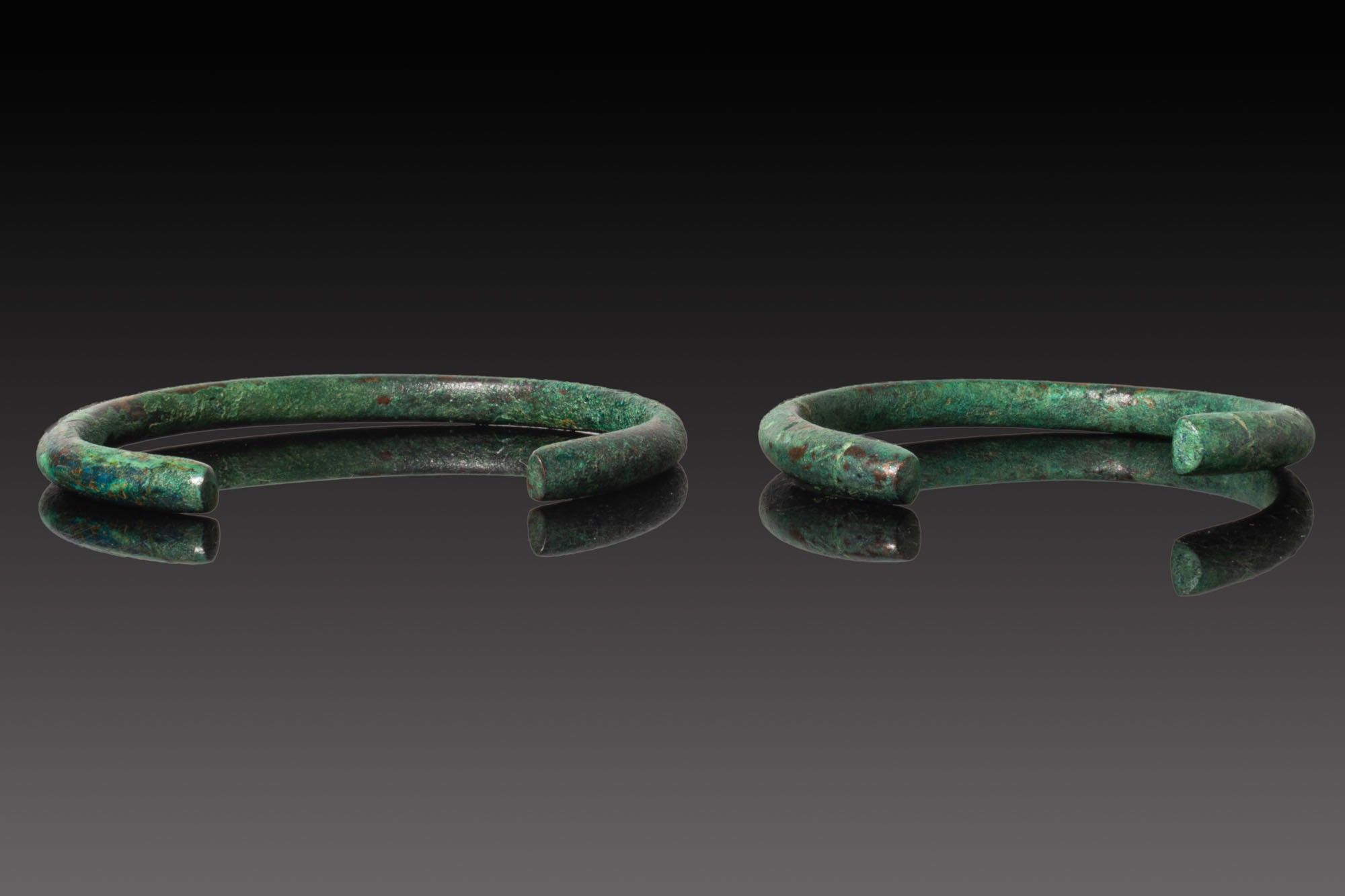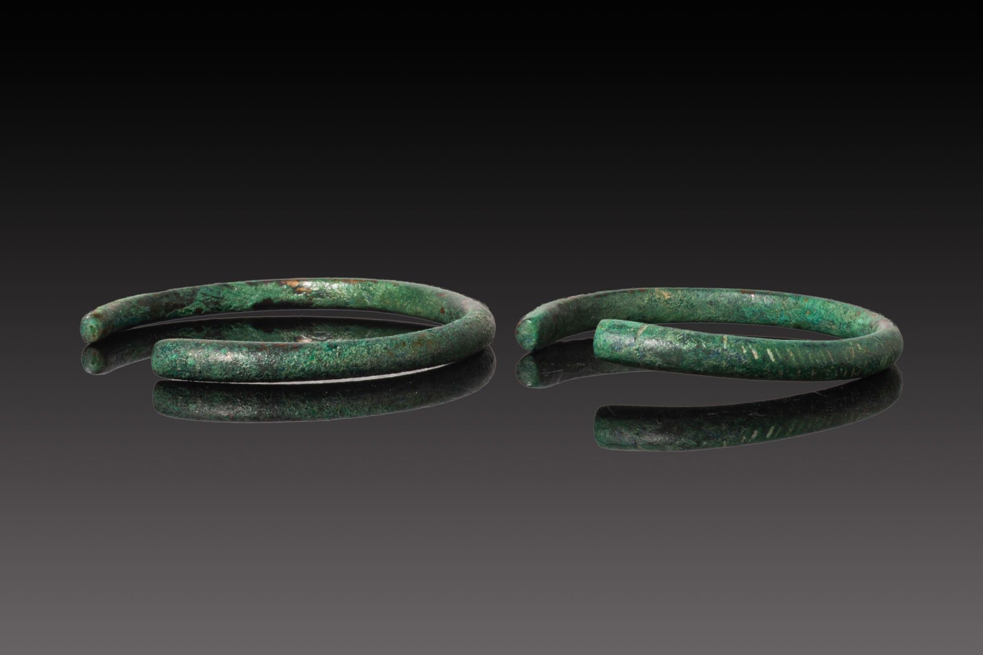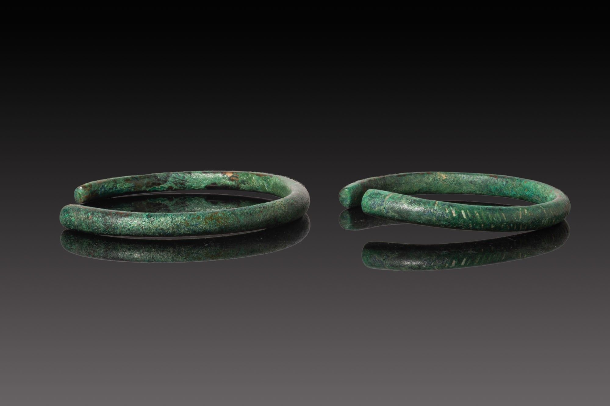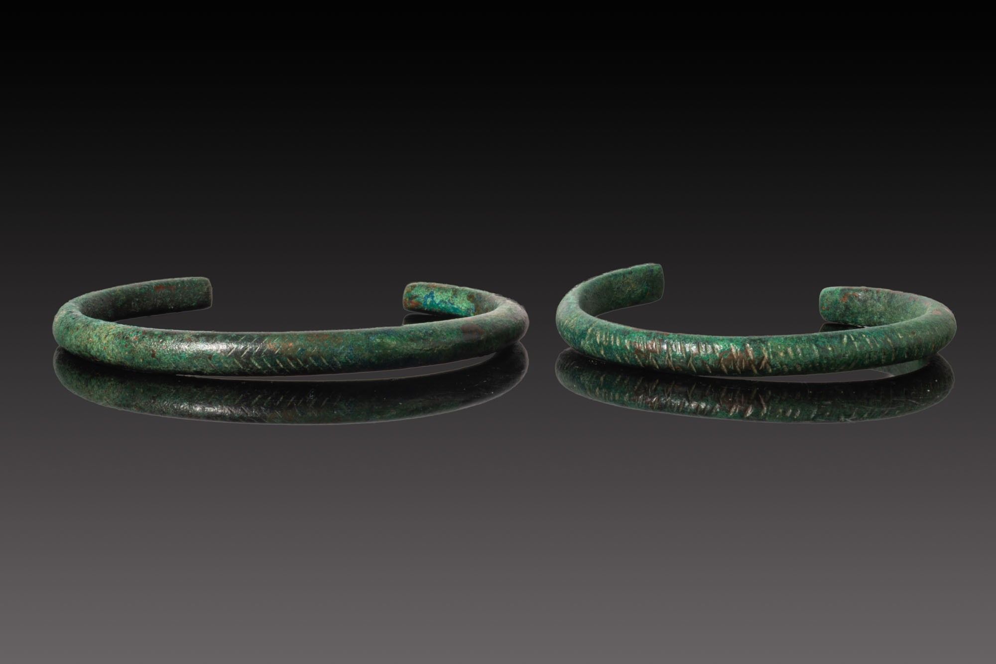 PAIR OF GREEK BRONZE DECORATED BRACELETS. Ca. 500 BC. A pair…