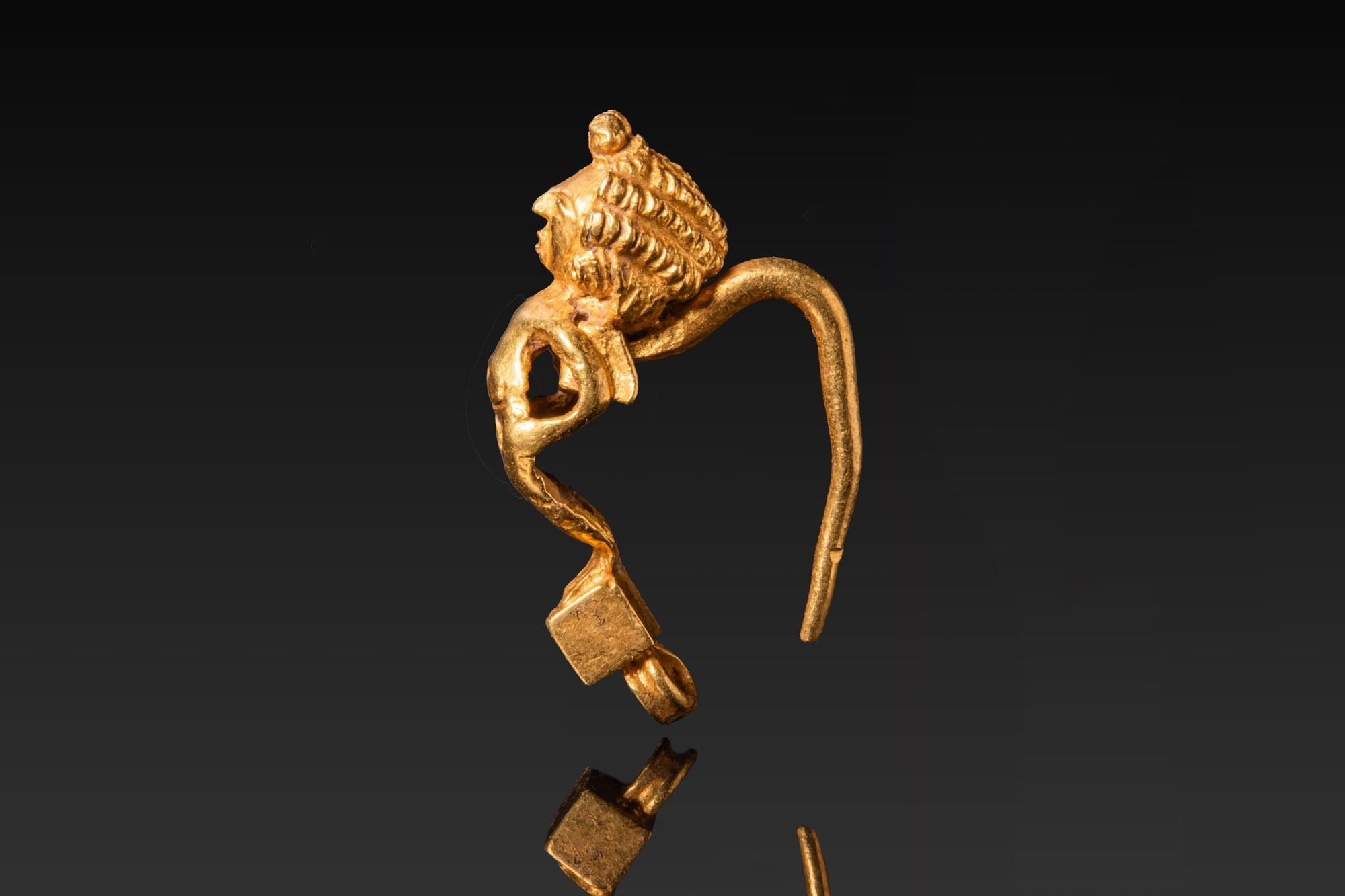 Premium GREEK GOLD EARRING WITH EROS. Ca. 100 BC - AD 100. A gold ea…