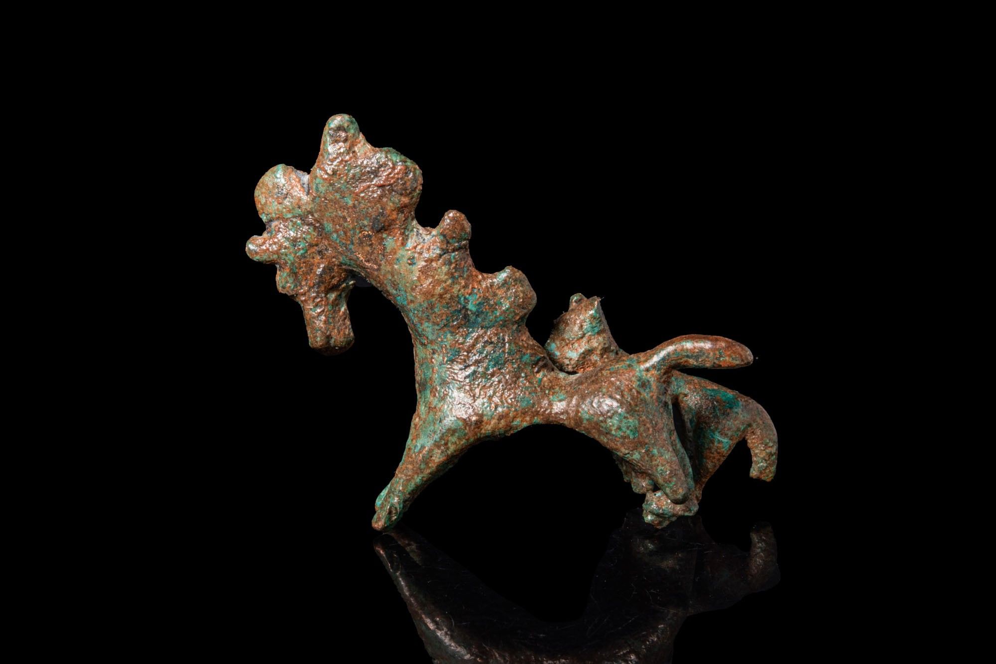 GREEK GEOMETRIC BRONZE PAIR OF HORSES. Ca. 800 - 700 BC. A c…