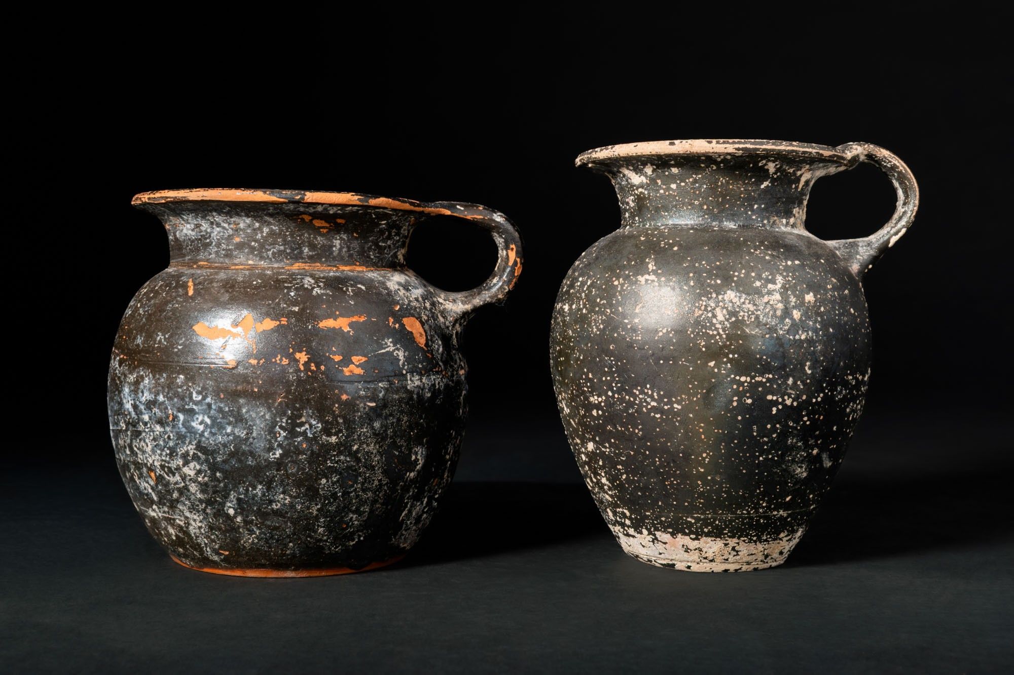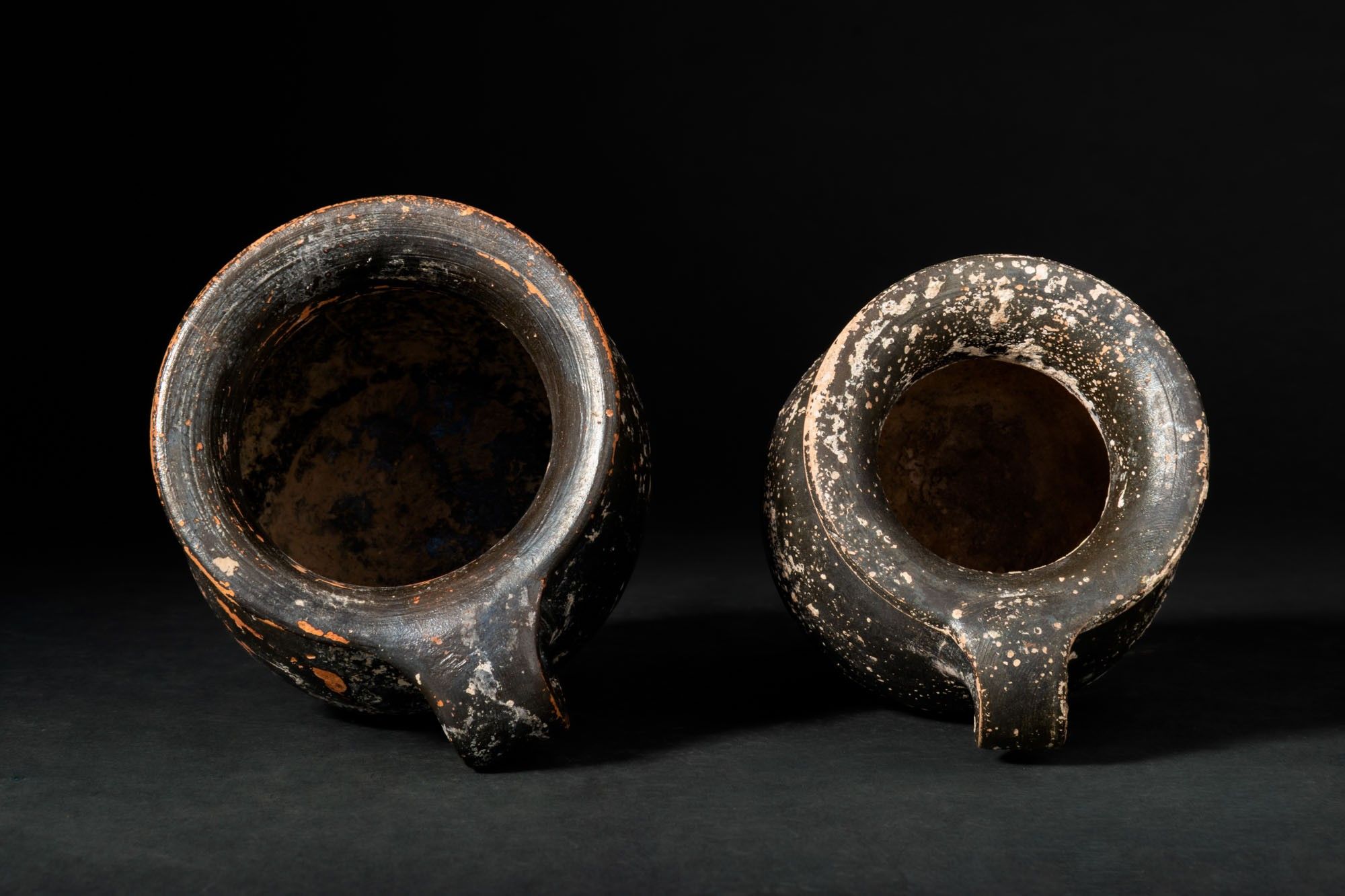 PAIR OF GREEK BLACK-GLAZE MUGS.