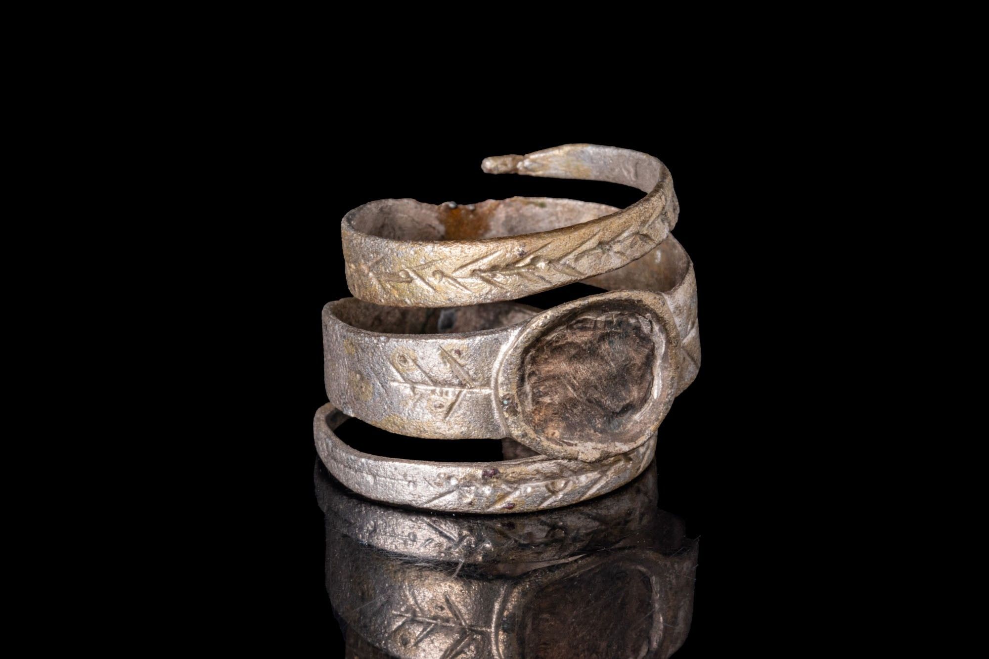 ROMANO-EGYPTIAN SILVER SNAKE RING. Ca. AD 1 - 300. A silver …